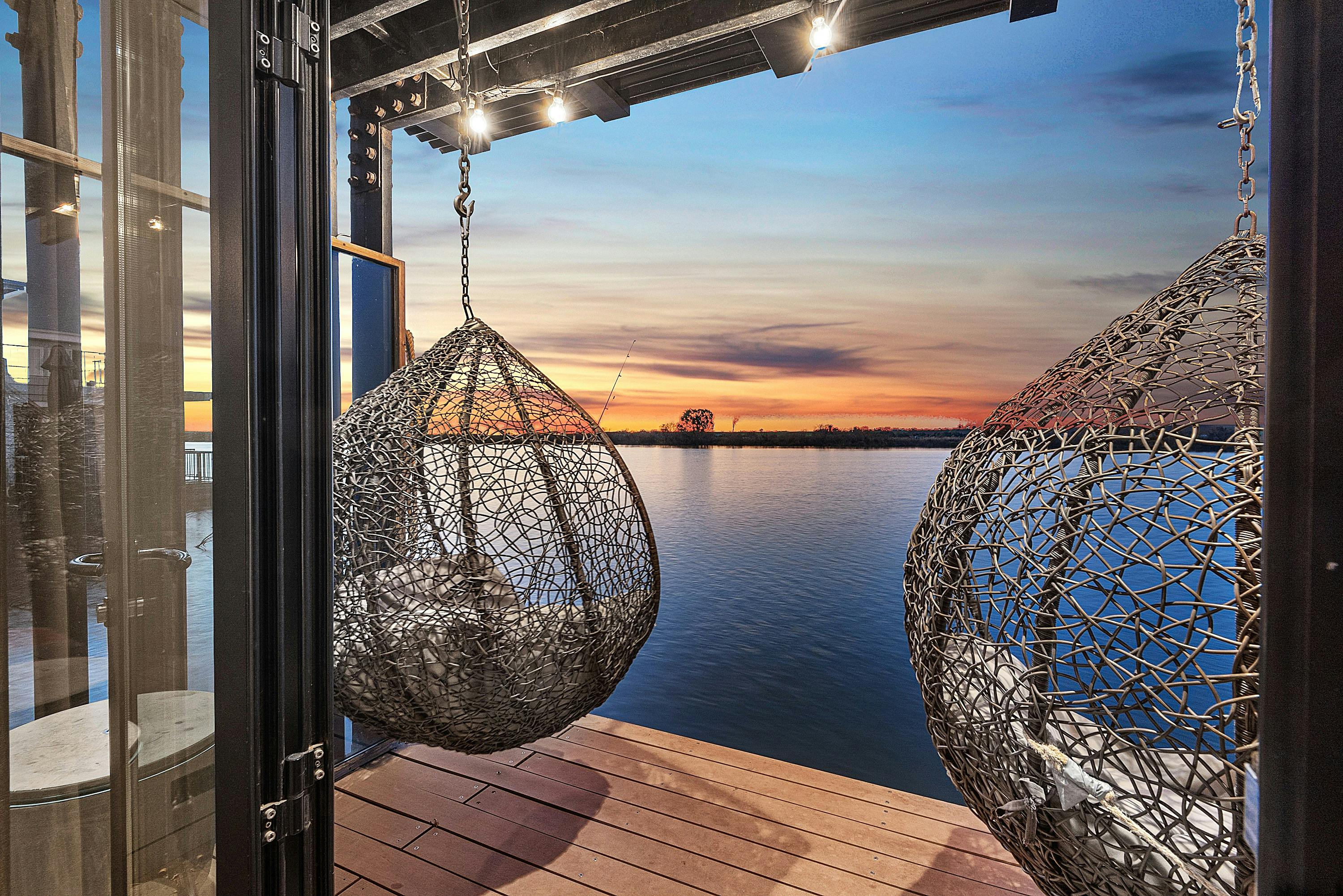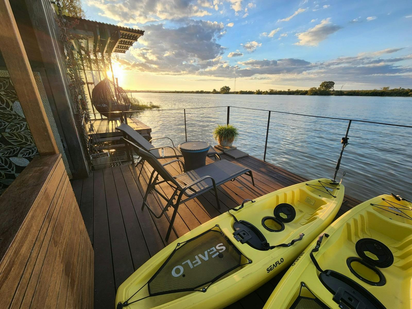 Relax on the sun lounges on the deck, or gently swing in the comfortable egg chairs while enjoying a cool beverage, watching the abundant wildlife and listening to the peaceful sounds of the water and birds on the lake and surrounding wetlands. In the cooler months, they have a firepit to keep you warm on the deck.
