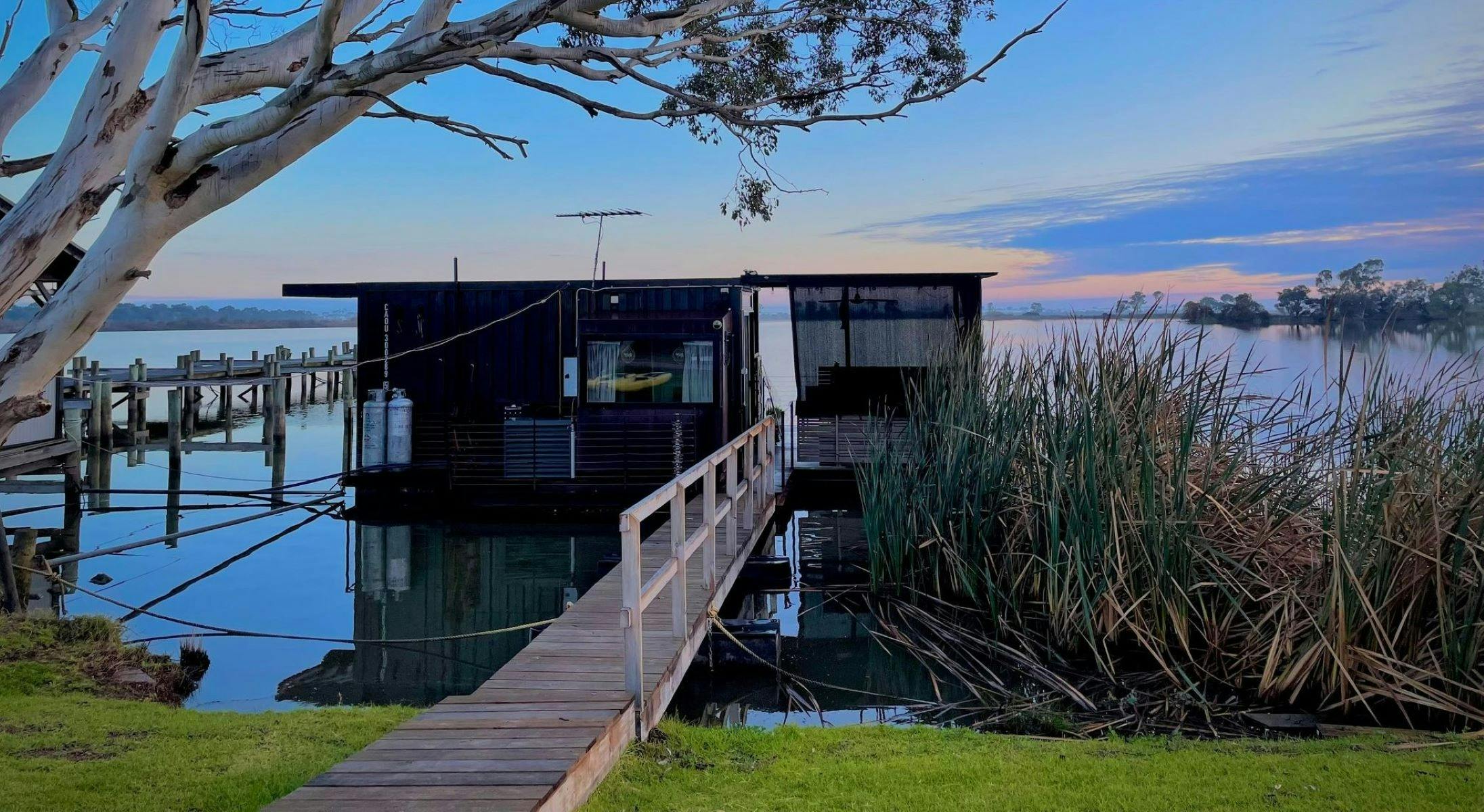 This modern floating accommodation suite has been designed as a stylish getaway for two people in the tranquil and secluded Wellington Private Marina. The Cube is moored on the lakefront, and less than 90-minutes from Adelaide.