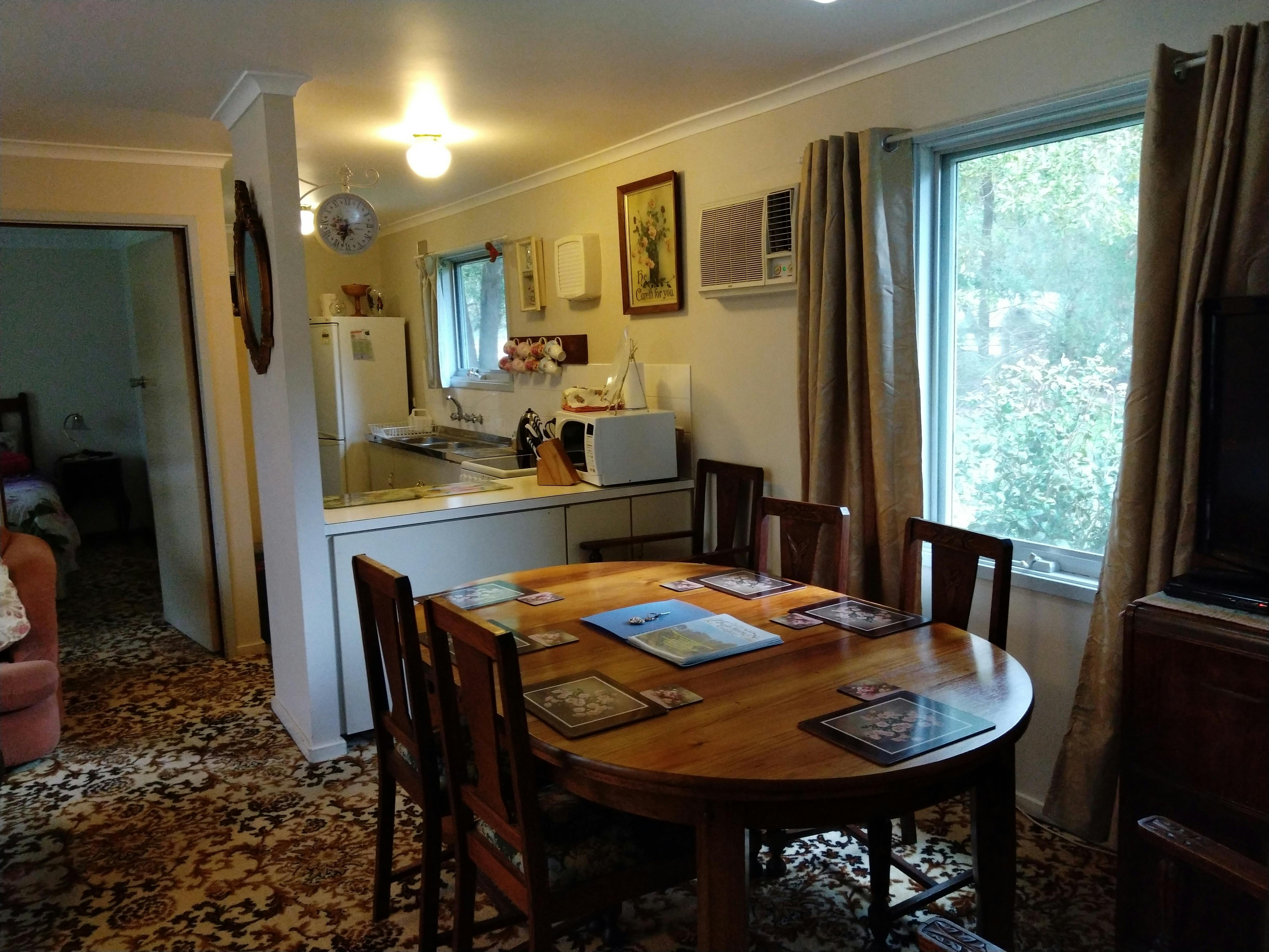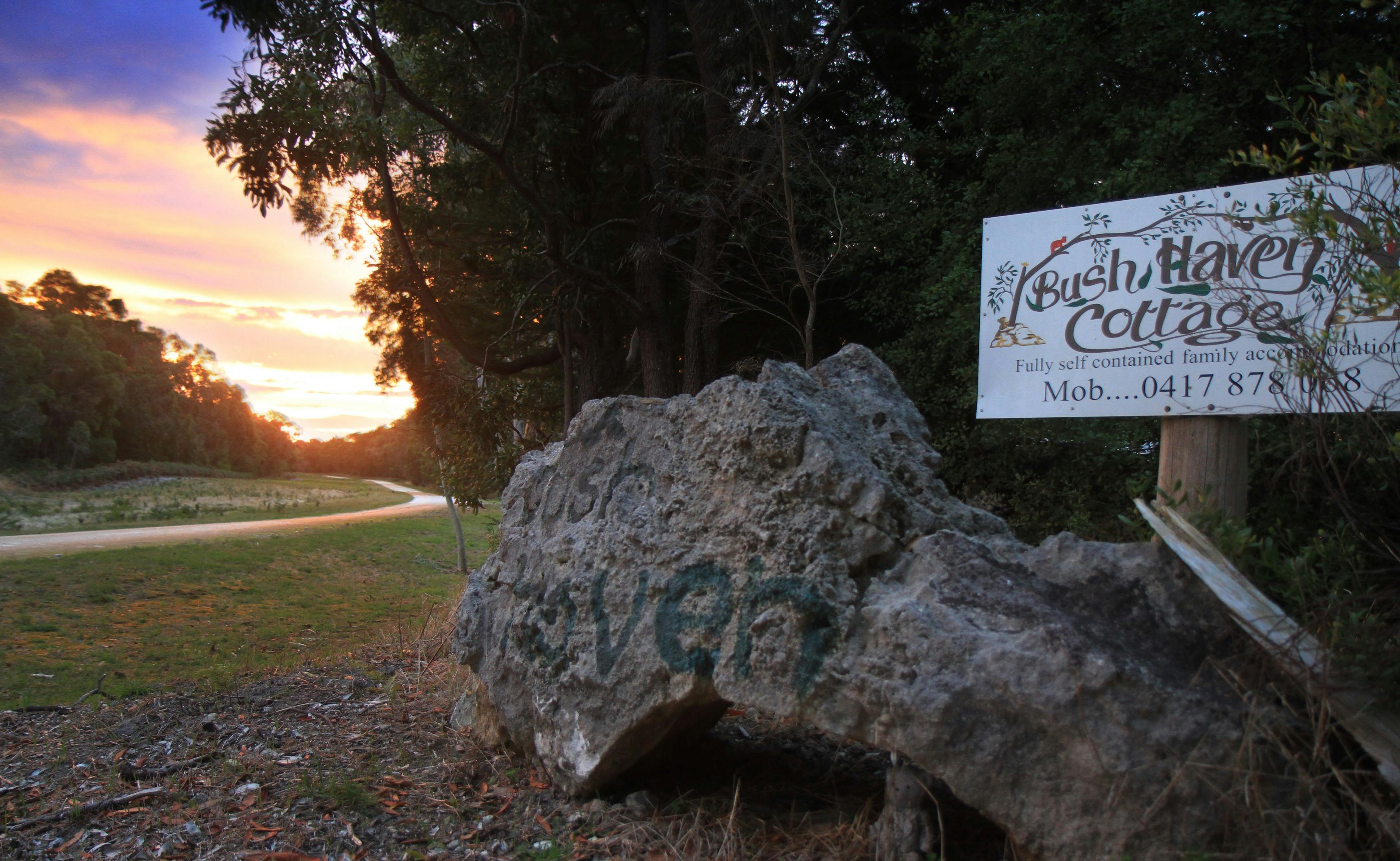 At Bush Haven Cottages, they have two fully self-contained cottages. Nanna's Rose Cottage and Bear Cottage. They're situated in a beautiful location 18 kilometres north of Mount Gambier, near the famous Blue Lake. They're set in gorgeous garden settings in a 63-acre property of stringybark forest.