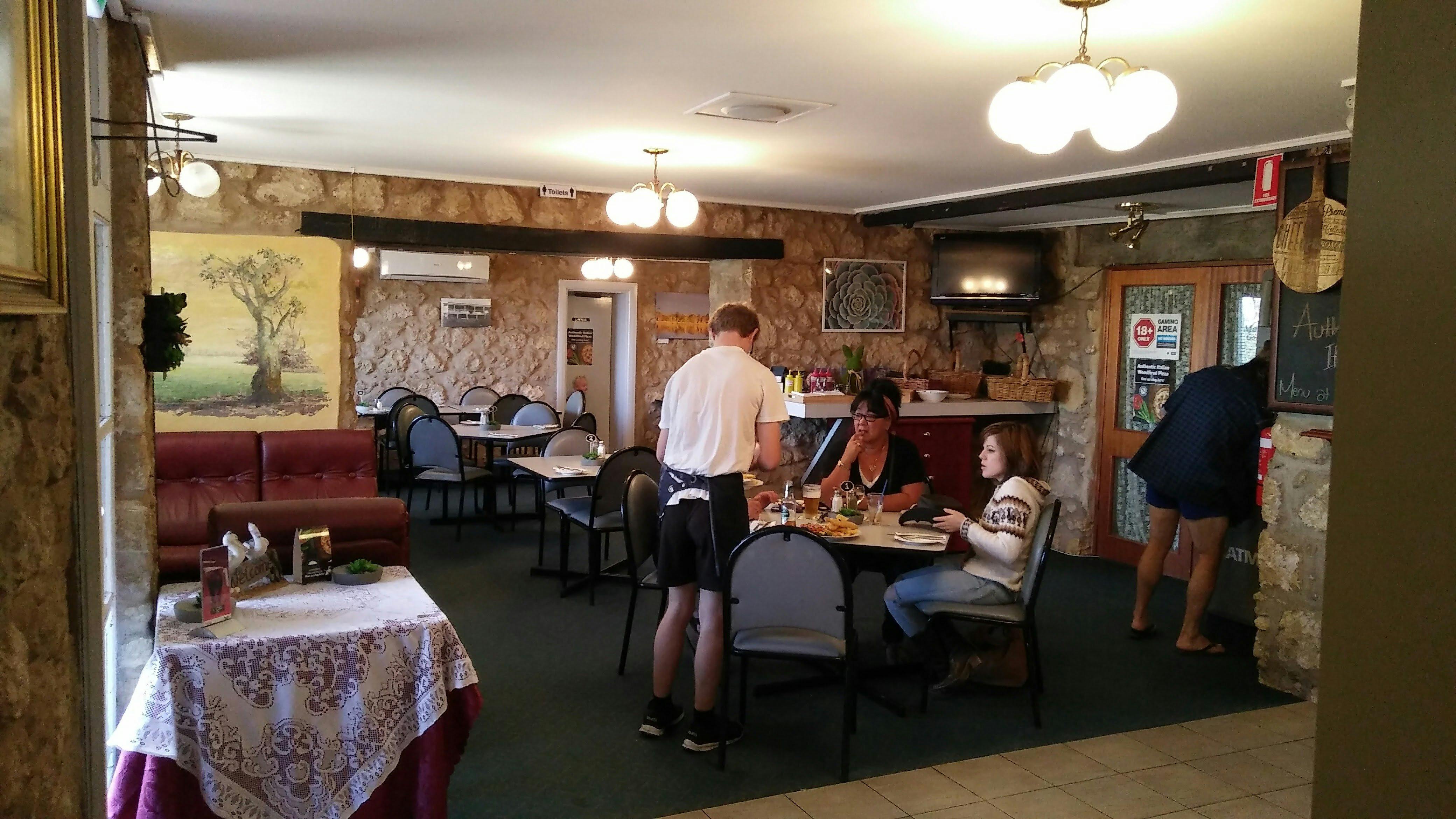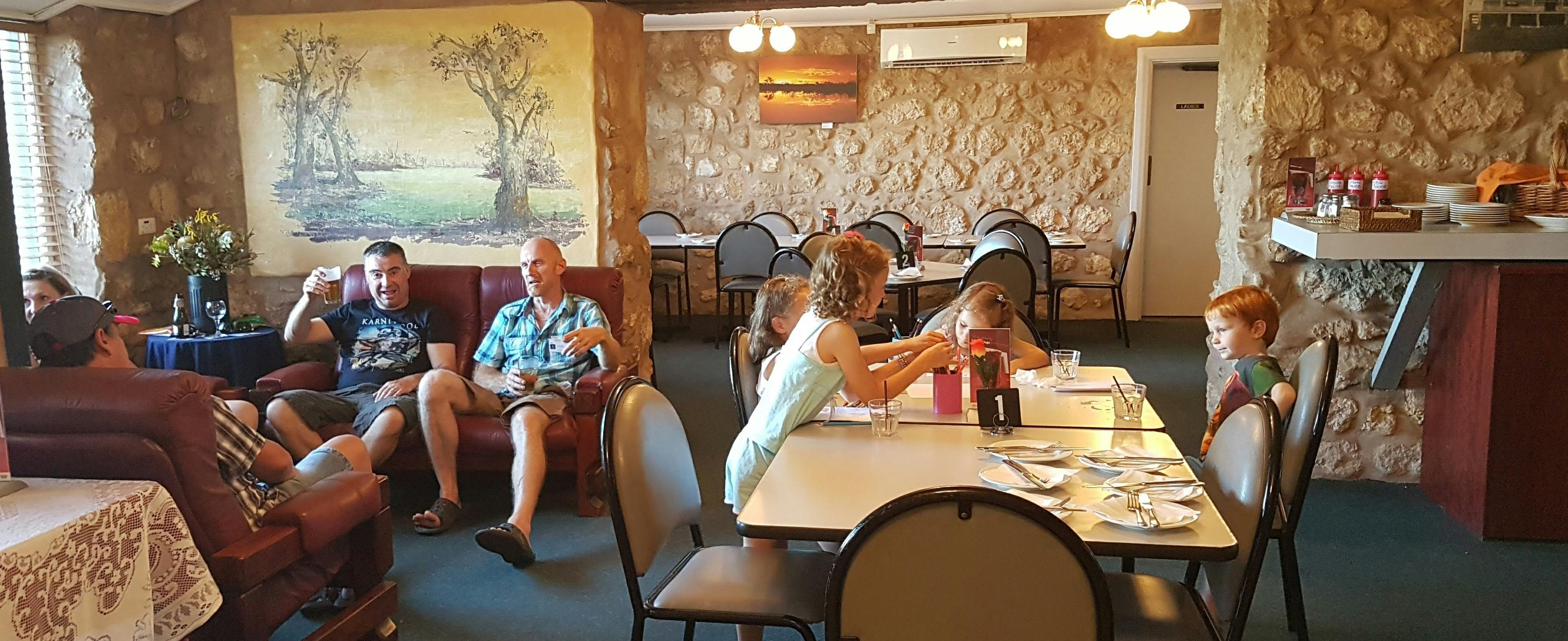 There is a large outdoor dining area, which can seat up to 100 guests, which has a fantastic outlook over the majestic Murray River and surrounding cliffs, which are a highlight upon sunset, displaying beautiful colours. You can also dine within the original dining room showcasing the stone walls and the large open fireplace.