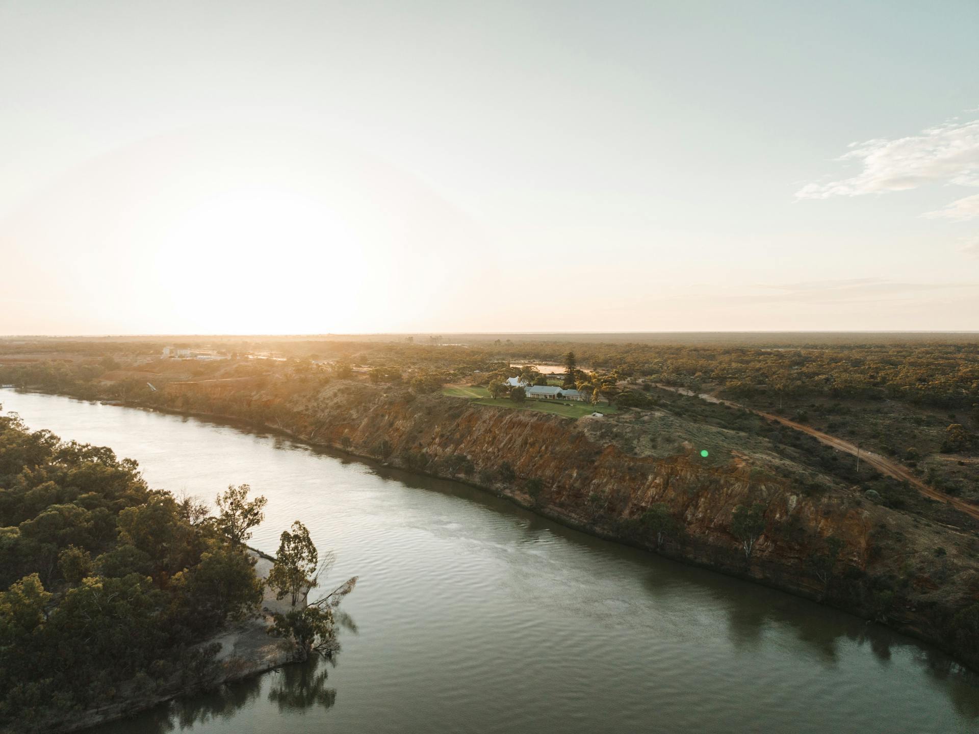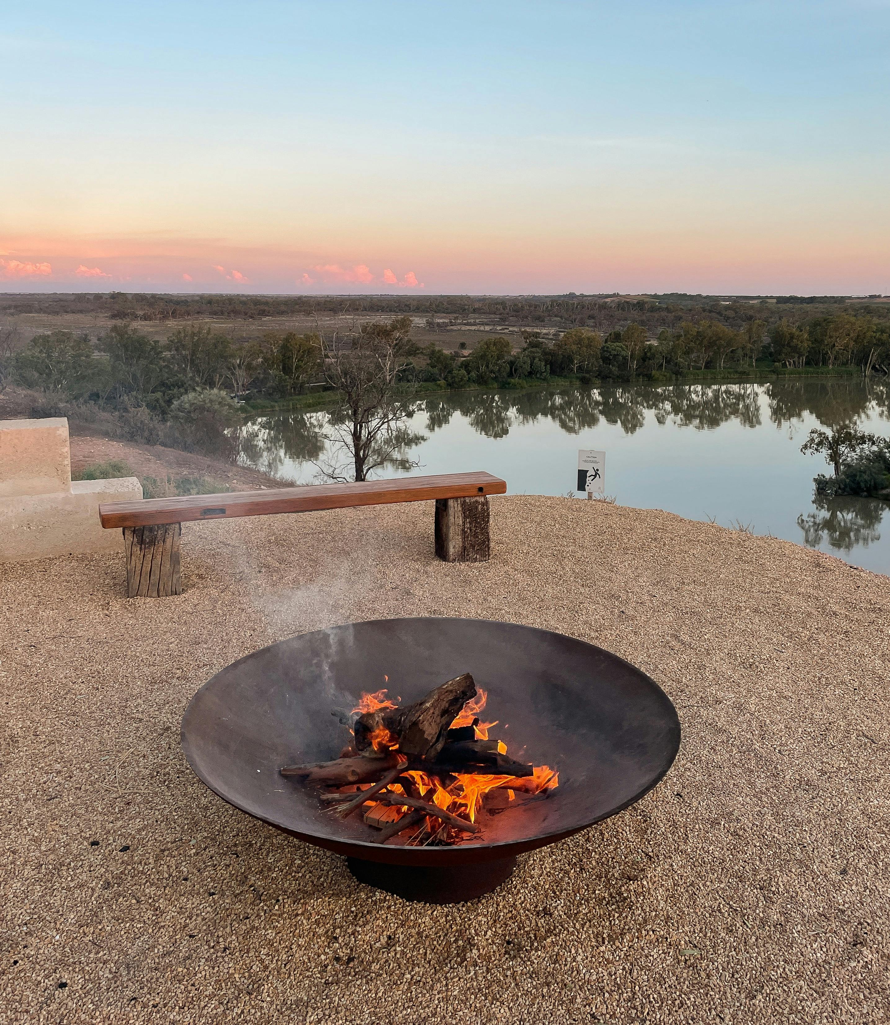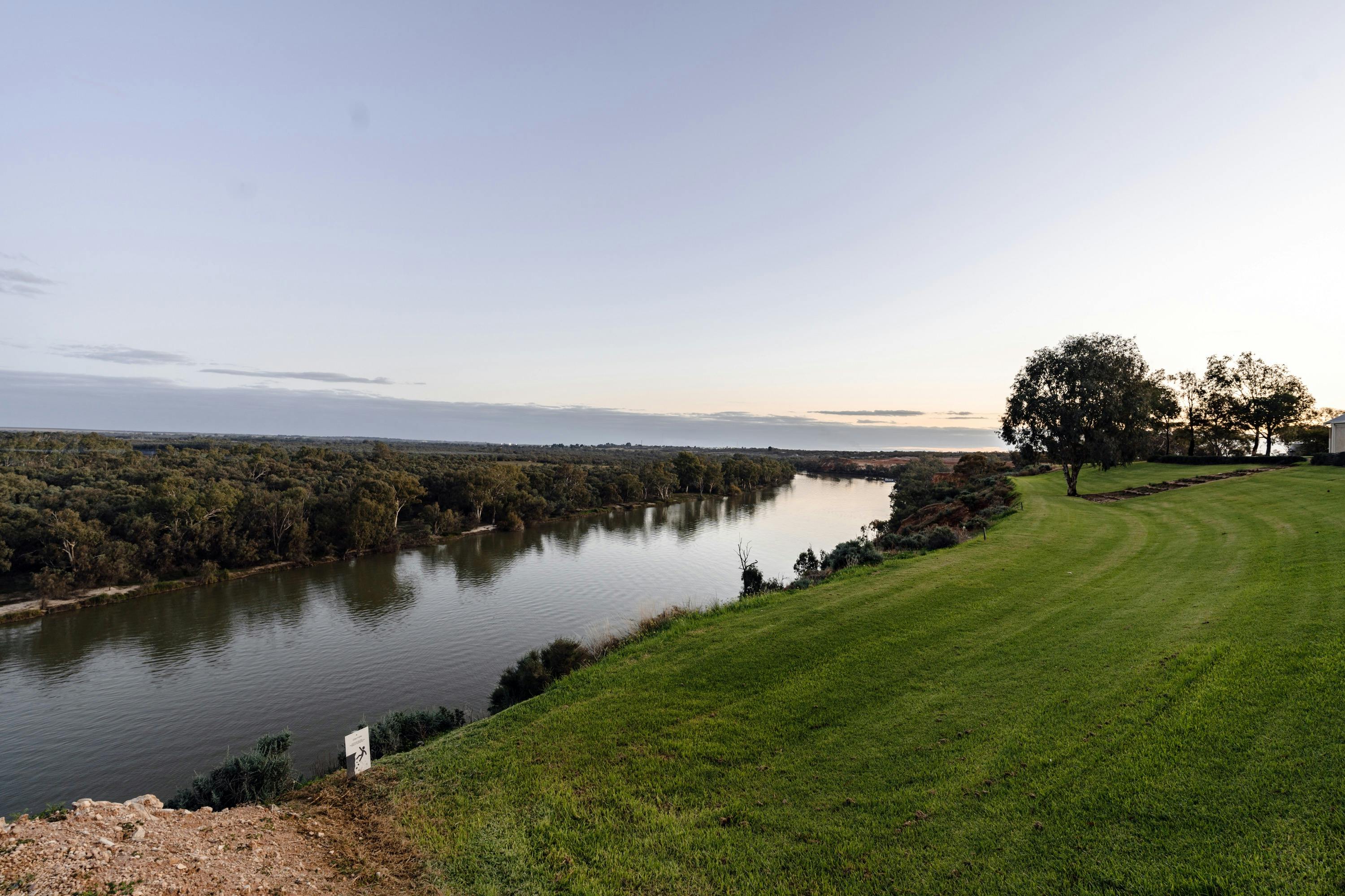 Sitting high above the Murray River on glowing ochre sandstone cliffs, a spectacular vista of the region floods the horizon. It is quiet here. Secluded. Just a couple of kangaroos, a solitary pelican and a plethora of warm panoramic skies to take your breath away.