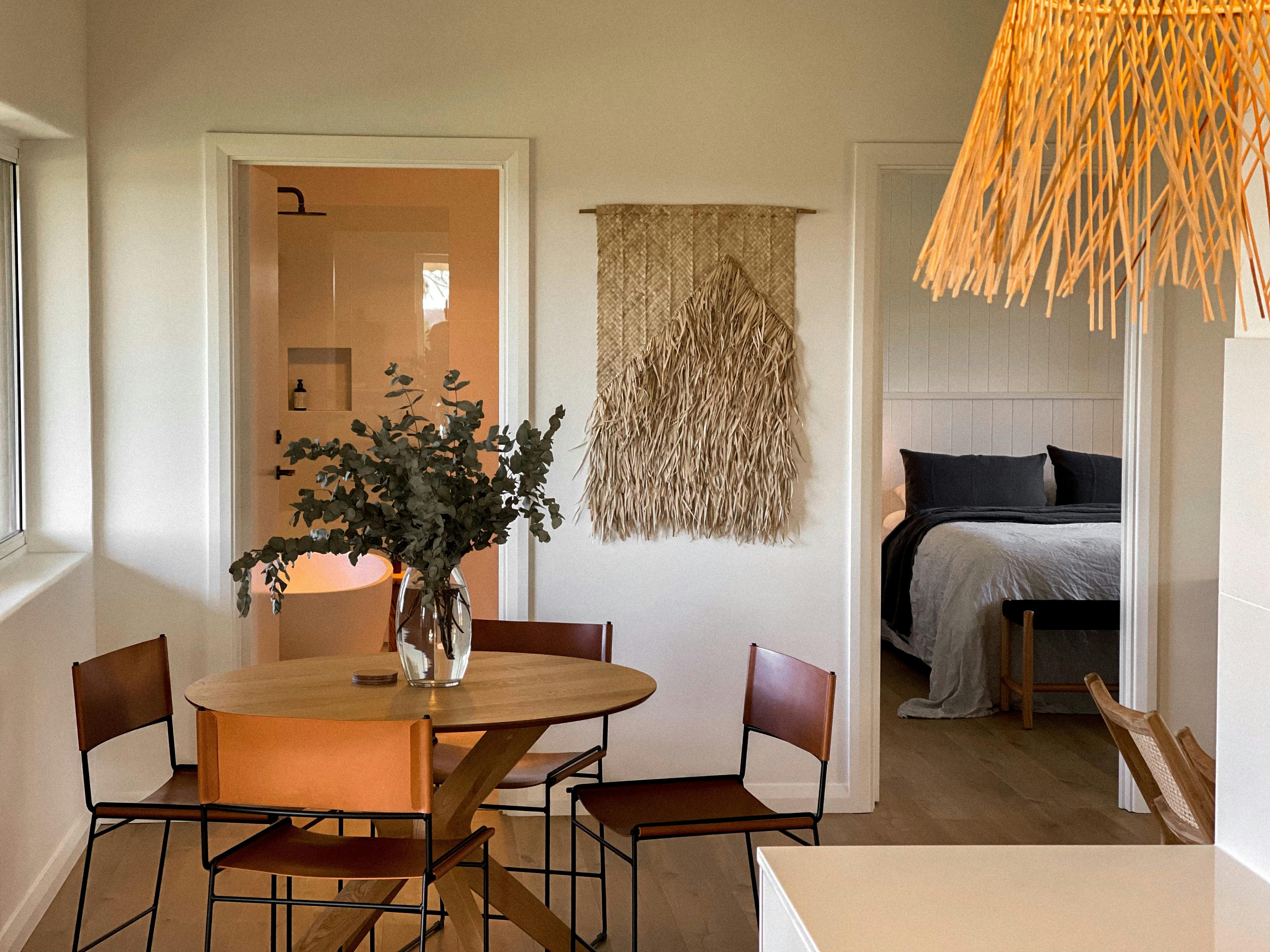 Indulge in a delicious grazing platter with locally made gin or wine. Sit under the bright, starry sky, cosy in the sunken cliffside fire pit. Soak in the freestanding, stone bath-tub & and fall away into a deep sleep, wrapped in the most delicious, pure linen.