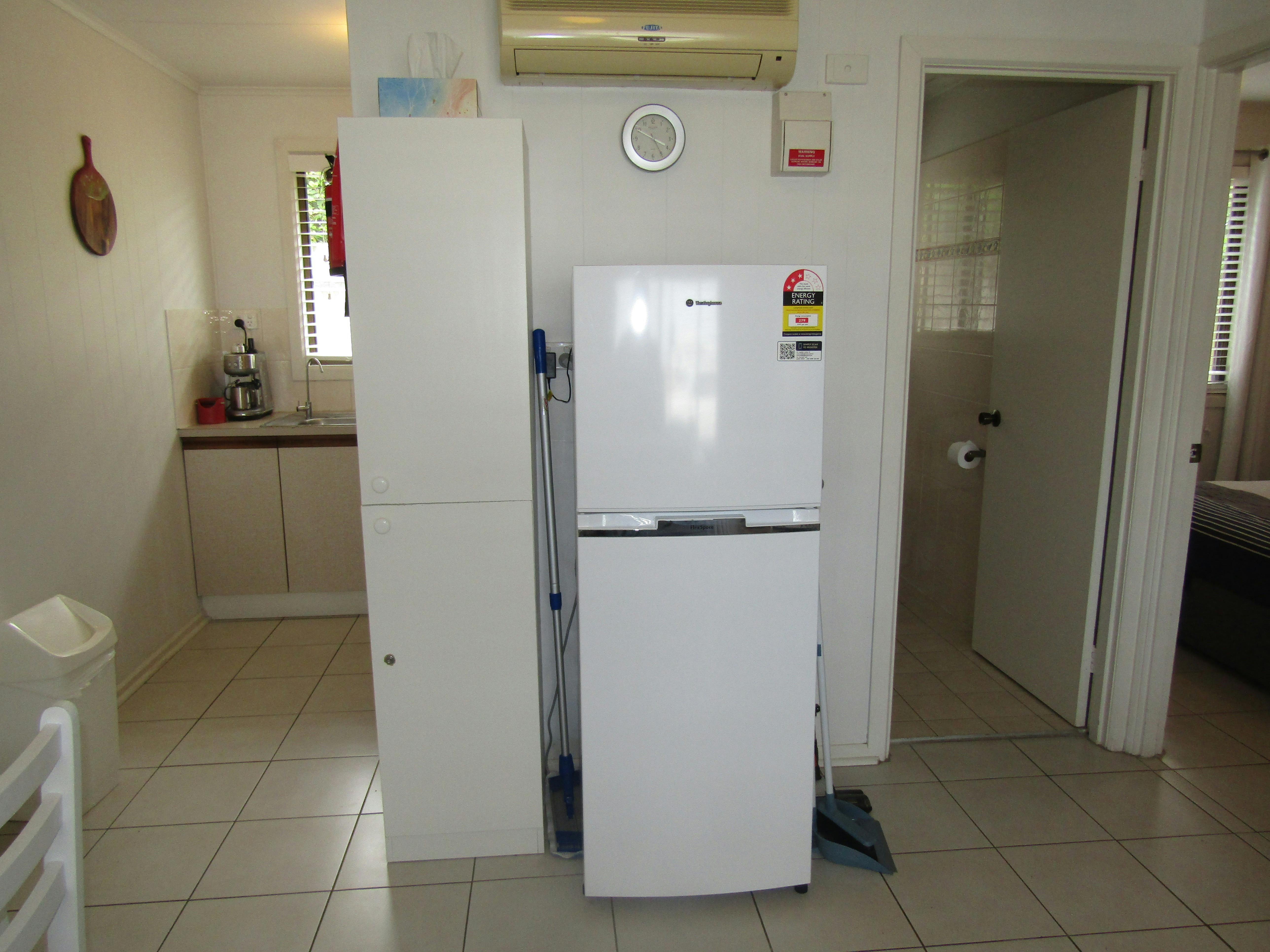 No washing machine - you can use the coin operated washing machines at the caravan park.