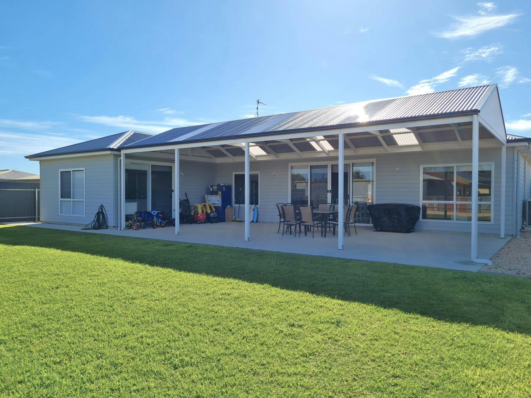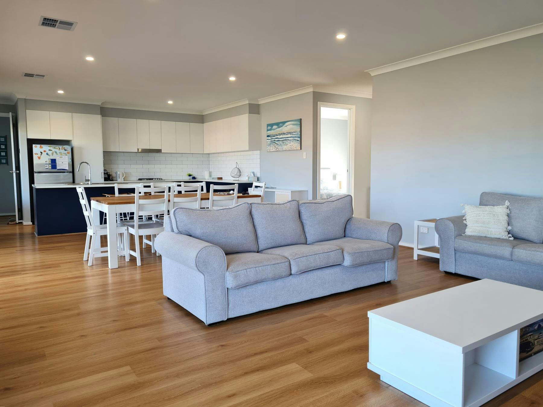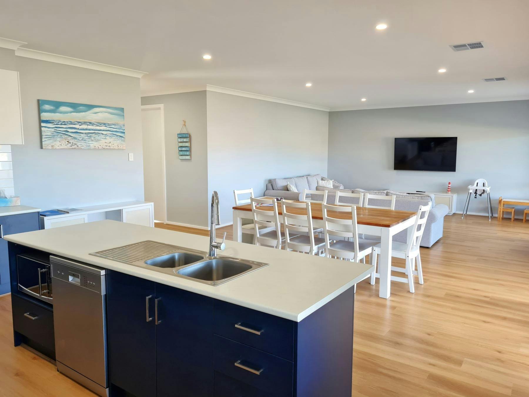 Sun of a Beach is a single-level holiday house in Moonta Bay, ideal for short or long stays. It features a large fenced yard, spacious undercover entertaining area, and is fully accessible with no stairs.