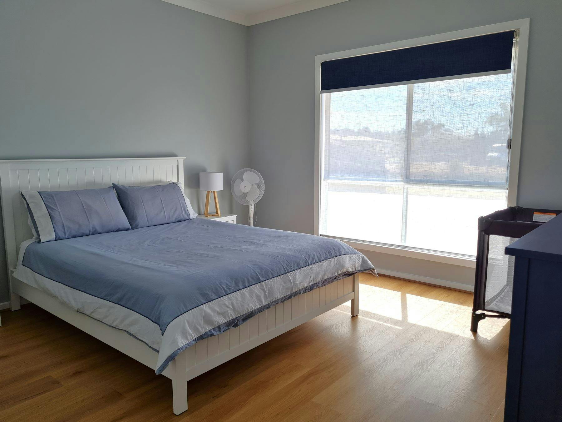 There are two bathrooms, including an ensuite with a walk-in shower. Reverse cycle ducted air-conditioning, a portable heater, and pedestal fans ensure year-round comfort.