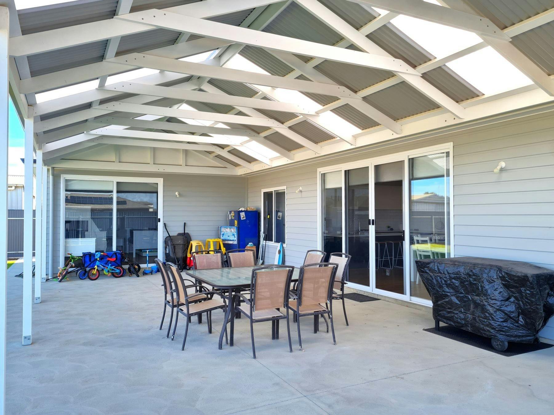Outside, enjoy the undercover area with a flat plate gas barbecue, and outdoor games. Secure off-street parking is available.