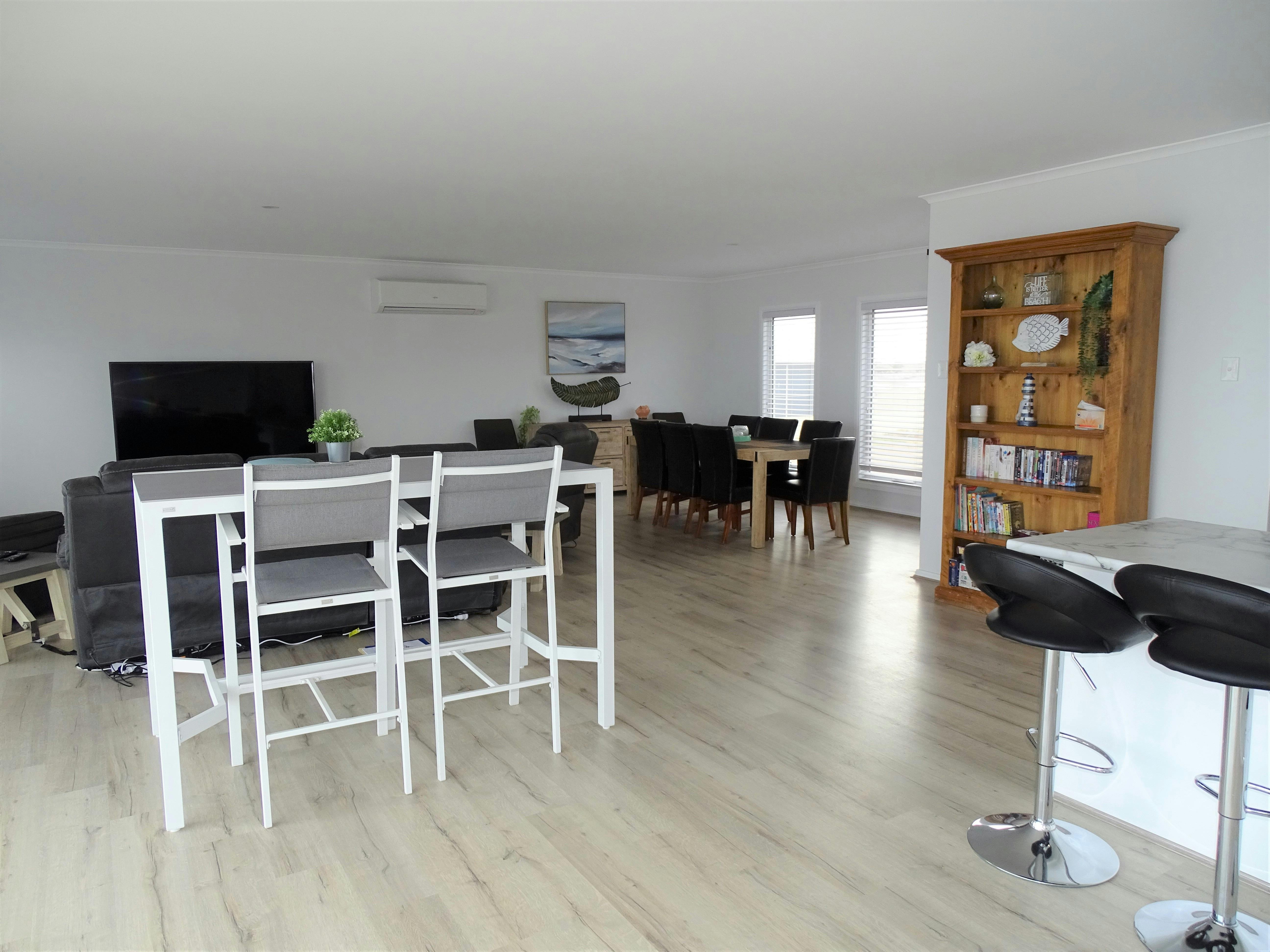 There is plenty of seating options in the dining & lounge rooms with a large smart television, DVD player & DVD's, board games, high chair and WiFi.