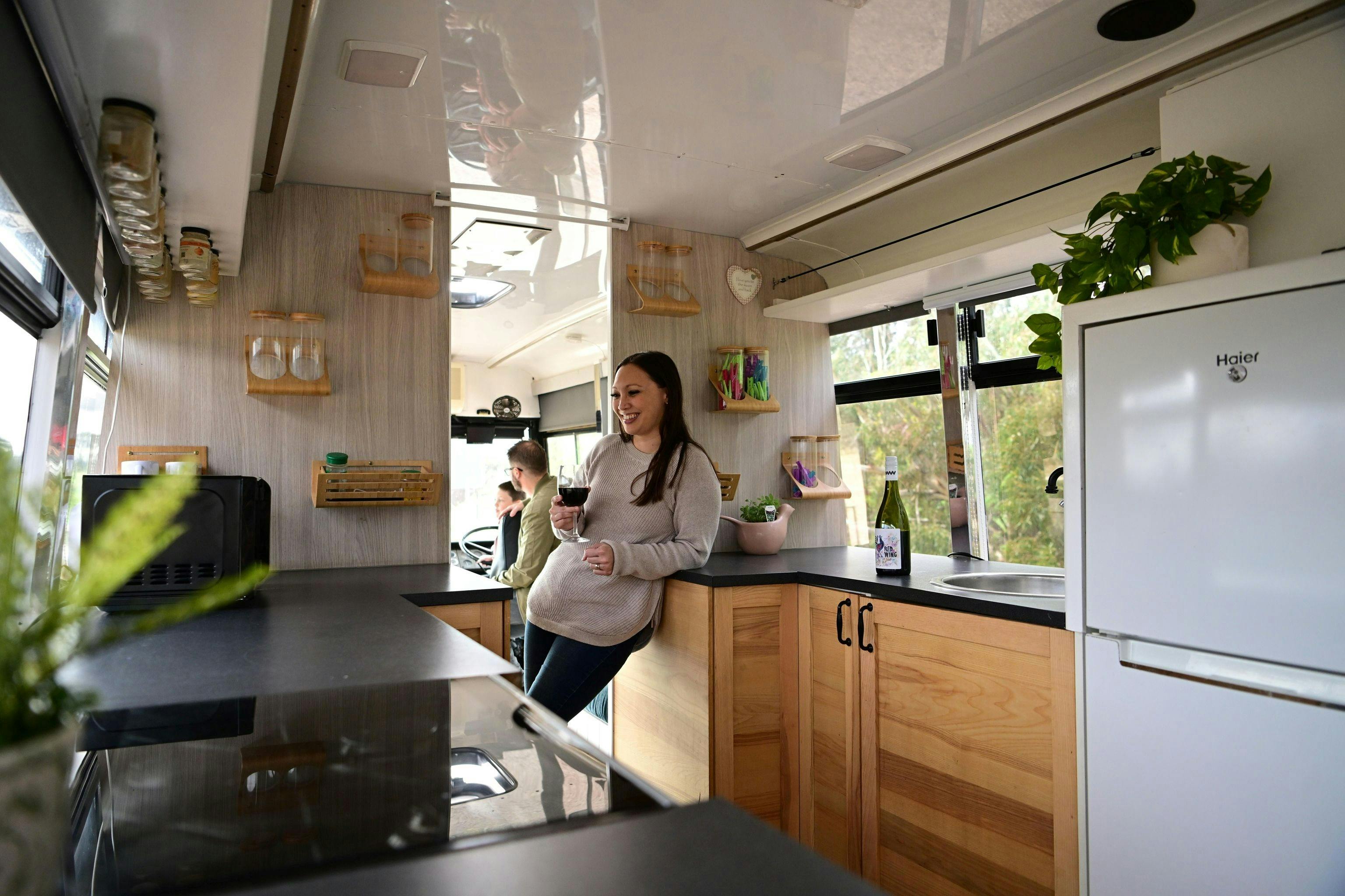 Florence the Bus is a fully renovated old school bus. She has all the mod cons and is glamping at its best. Florence accommodates two adults and two children. The kitchen is fully equipped and there is a full size fridge/freezer, microwave, oven, hot plates and a separate working area.