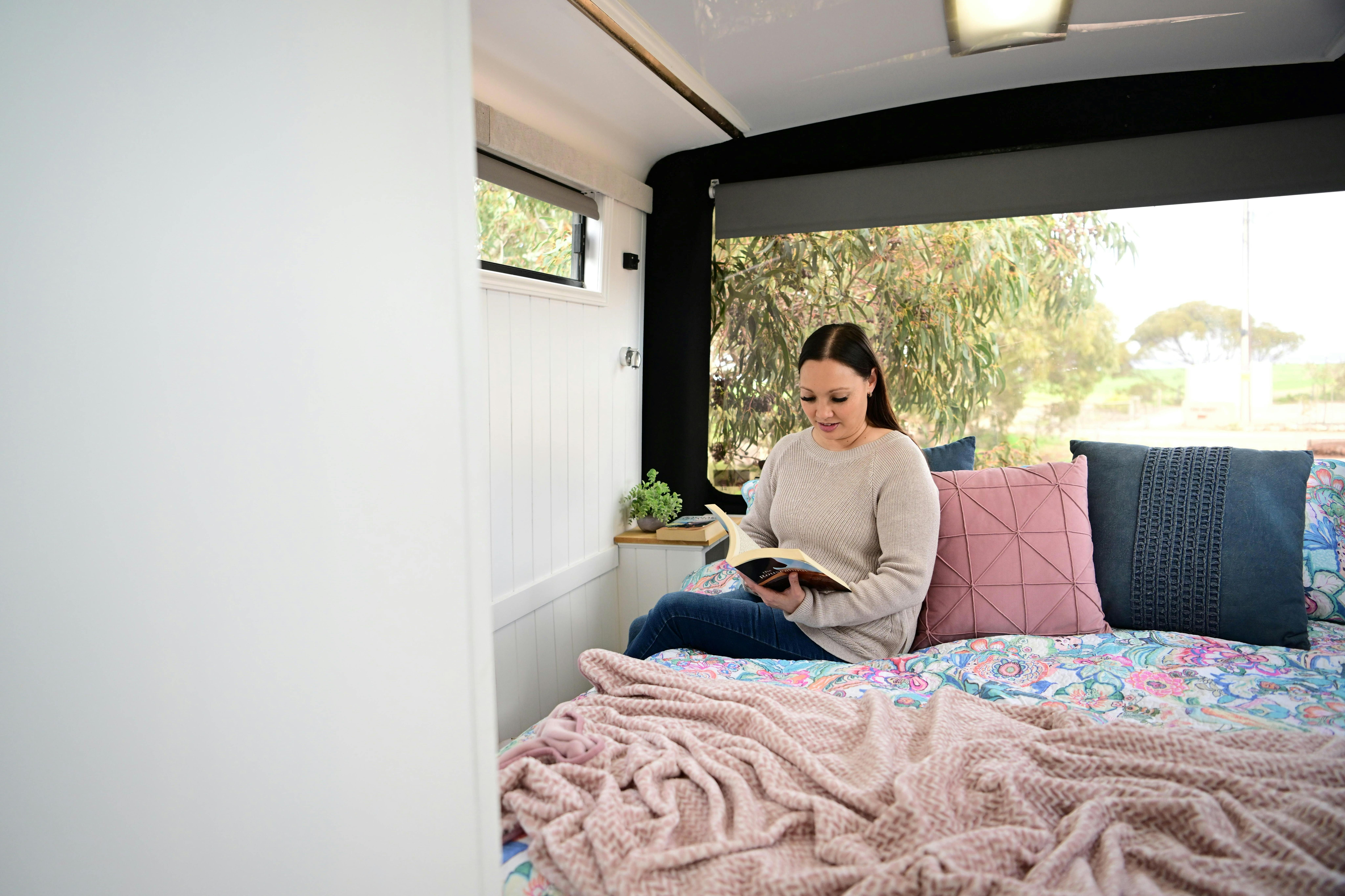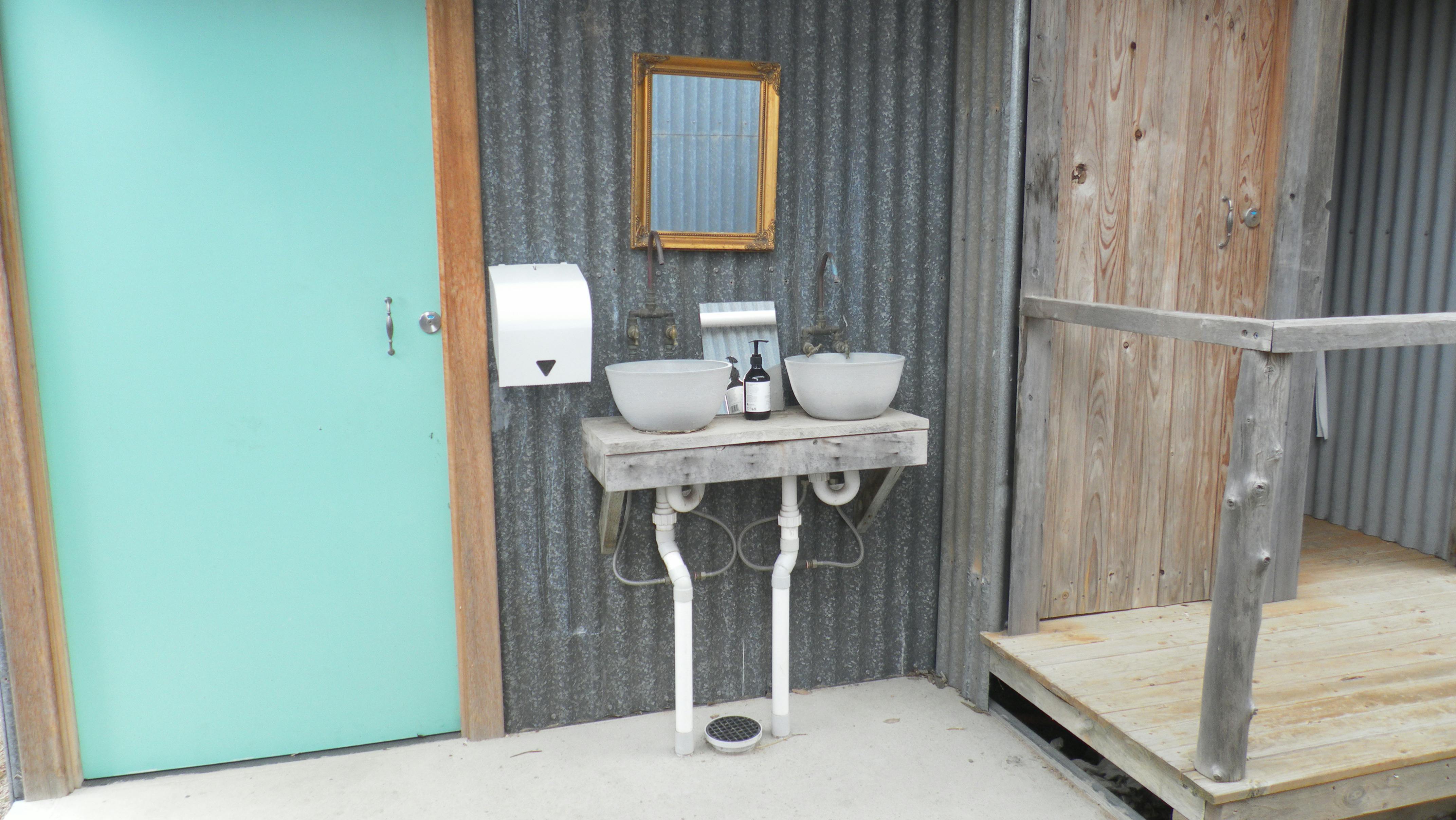 Flo has an inside bathroom and toilet but we would suggest guests use the outdoor bathroom near The Shed for longer showers.