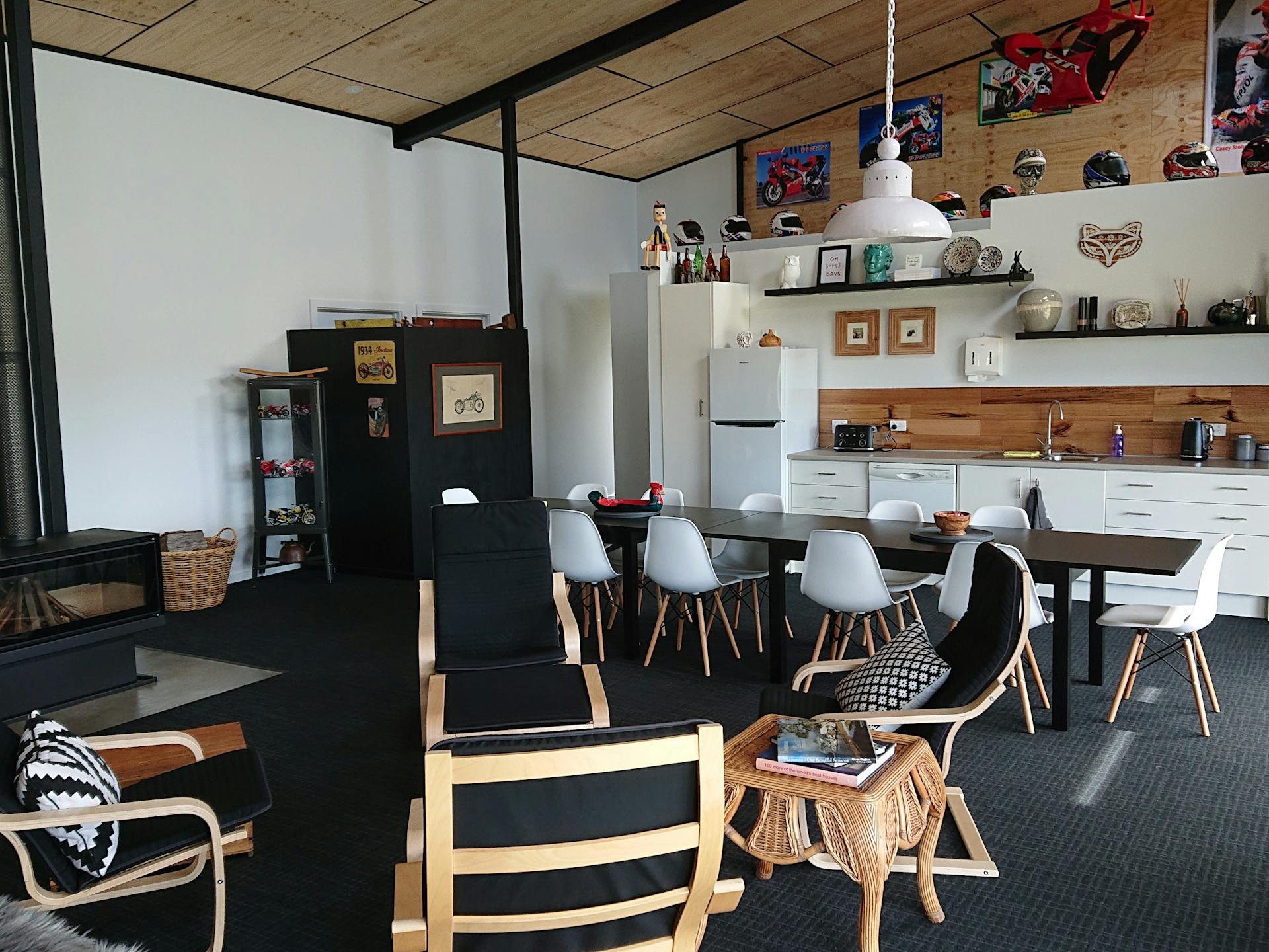 There is a large wood heater in the central space, perfect for like minded folk to sit and mingle.