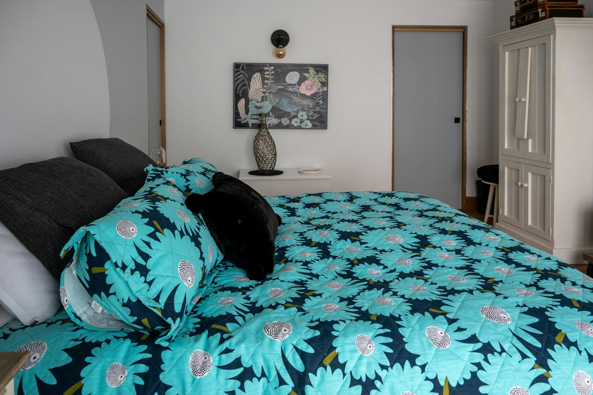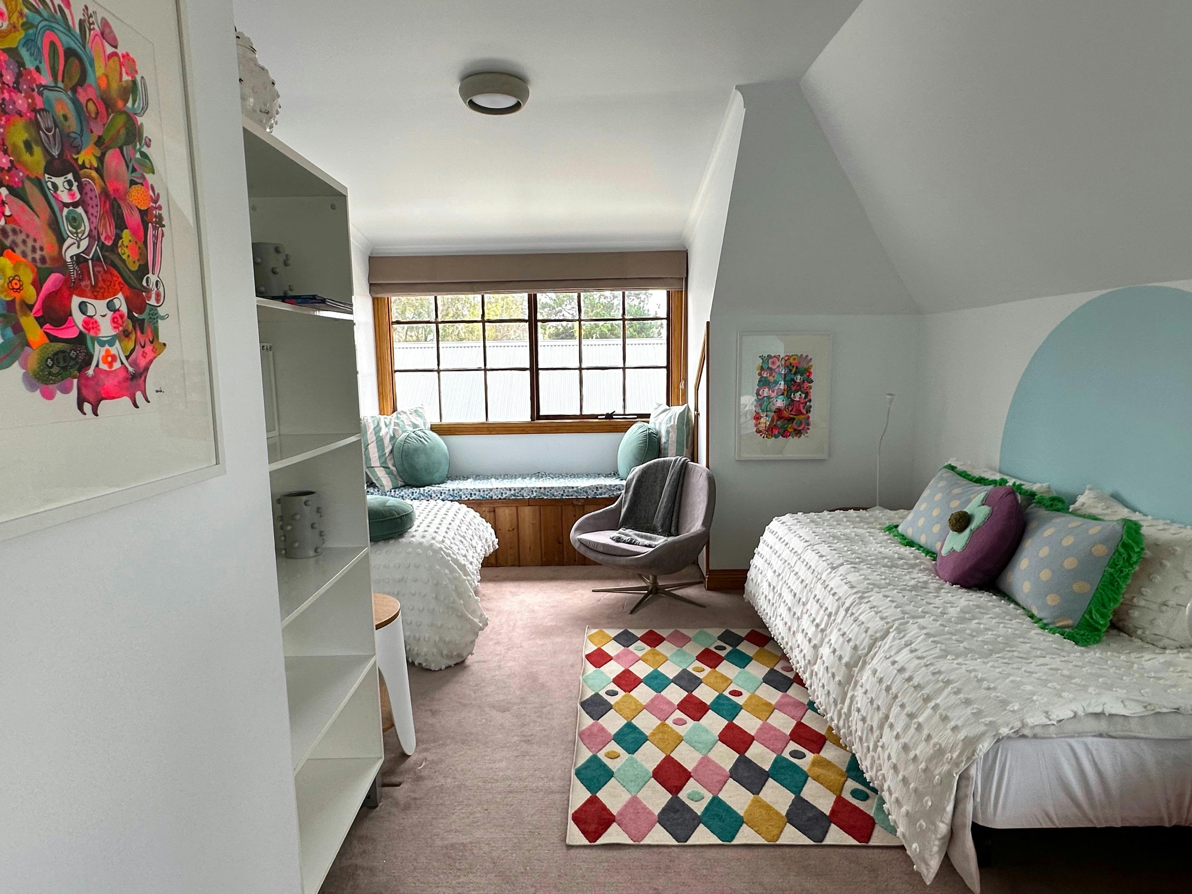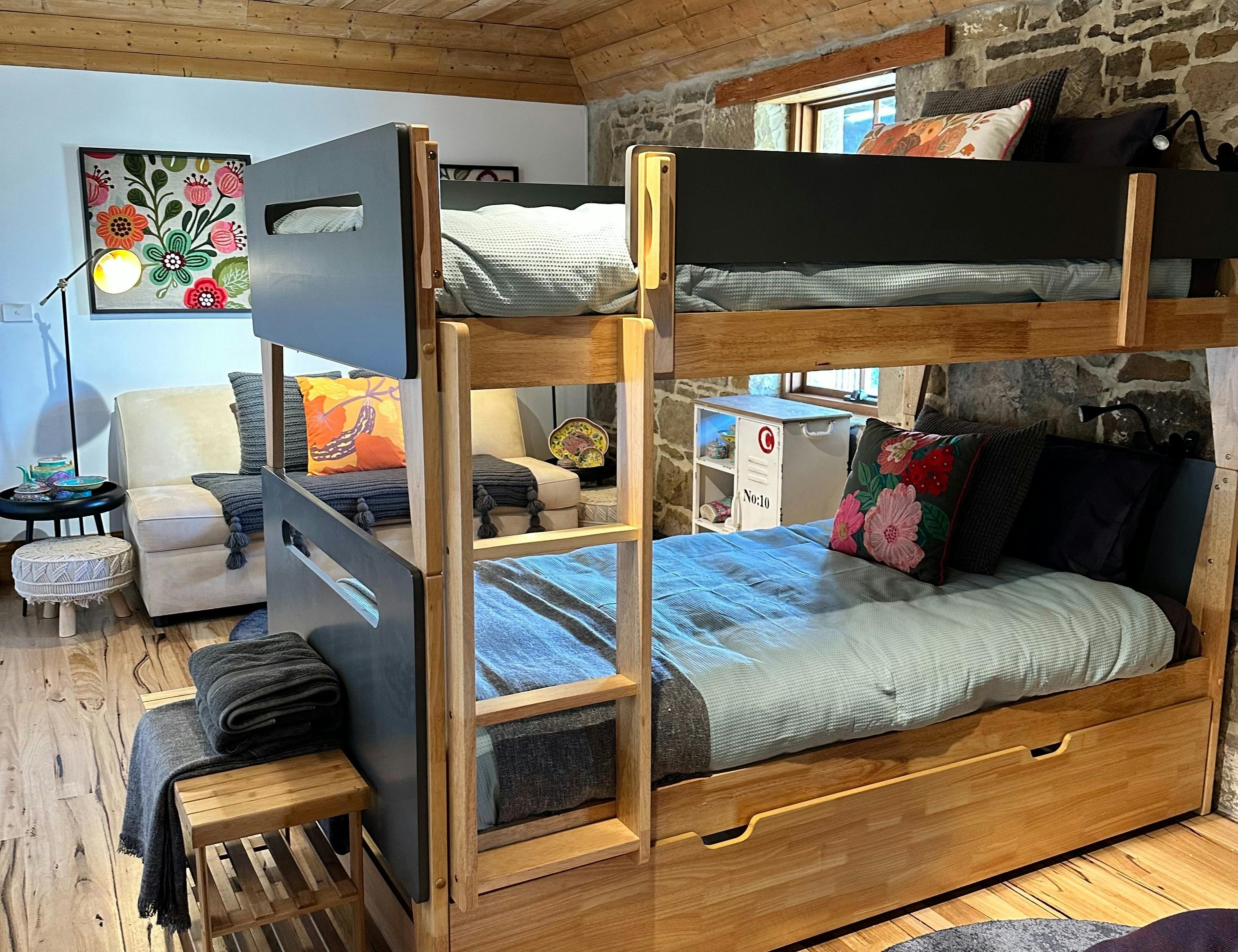 You can book 'The Estate' which sleeps up to 17 people in six rooms; with an option to add 8 more beds in the beautifully curated bunk room called 'Mosh' to make 25, as well as an option to book 'Gidget, The Caravan' which sleeps another 2, making a maximum of 27. 'The Estate' and 'The Estate Plus (Mosh and or Gidget)' booking includes the use of a modern chef's kitchen.