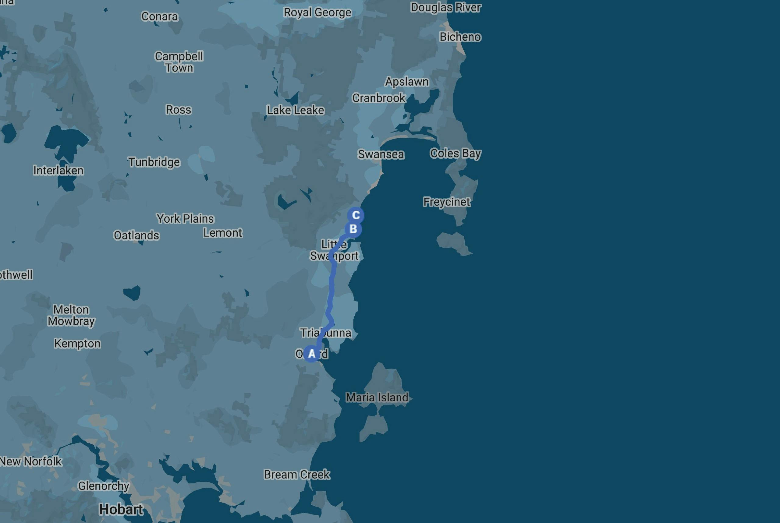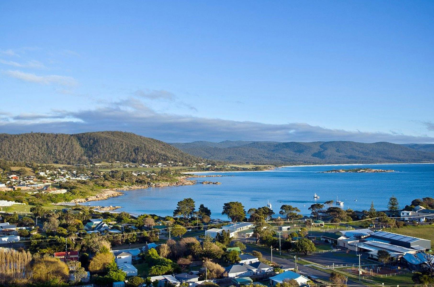 A morning in Orford brings more walking opportunities. The faint line of the Old Convict Road follows the course of the Prosser River through Paradise Gorge on the original, convict-built track between Orford and Hobart. Or head up into the tall gums and towering views of the Three Thumbs Lookout south of town.