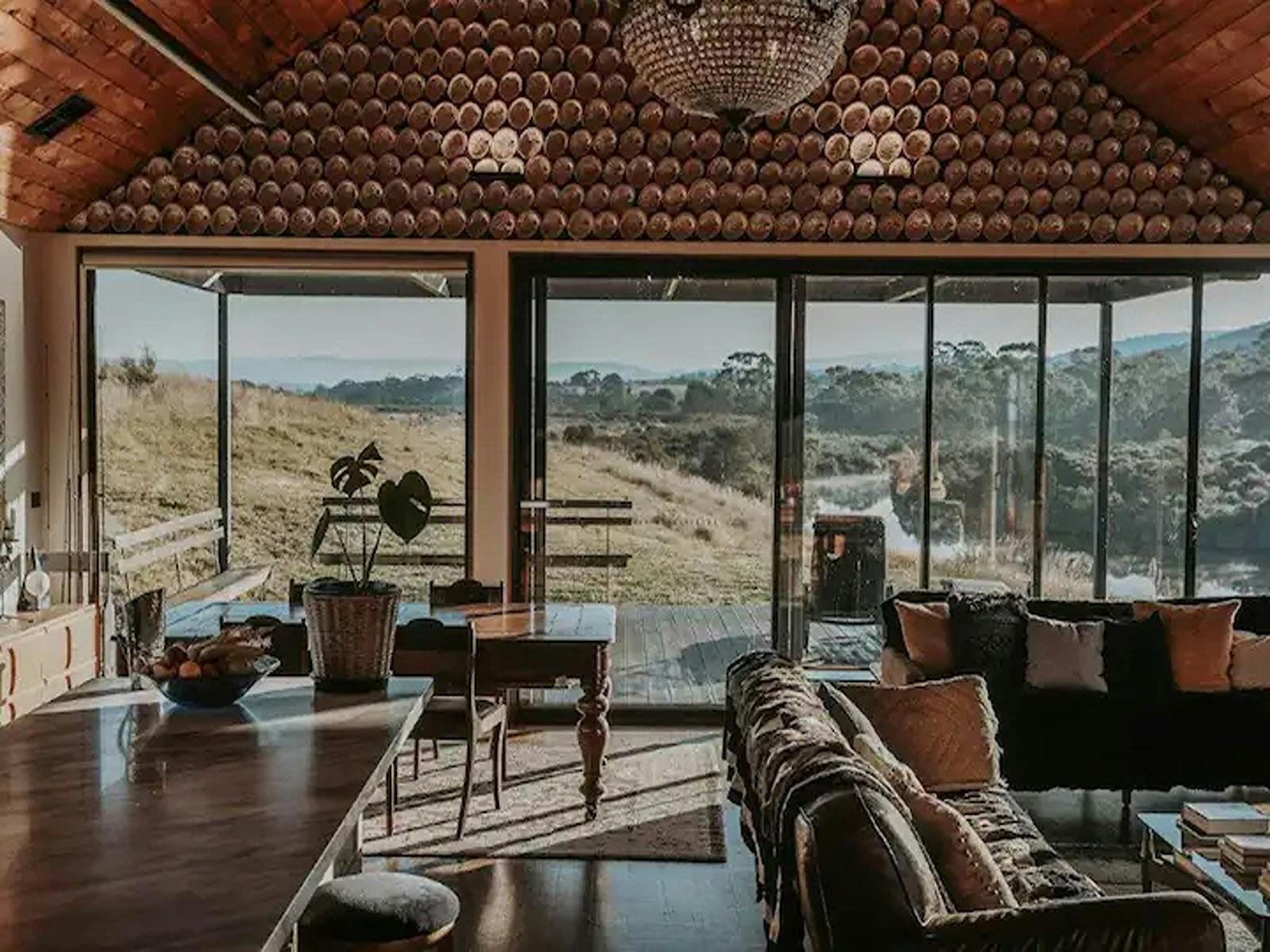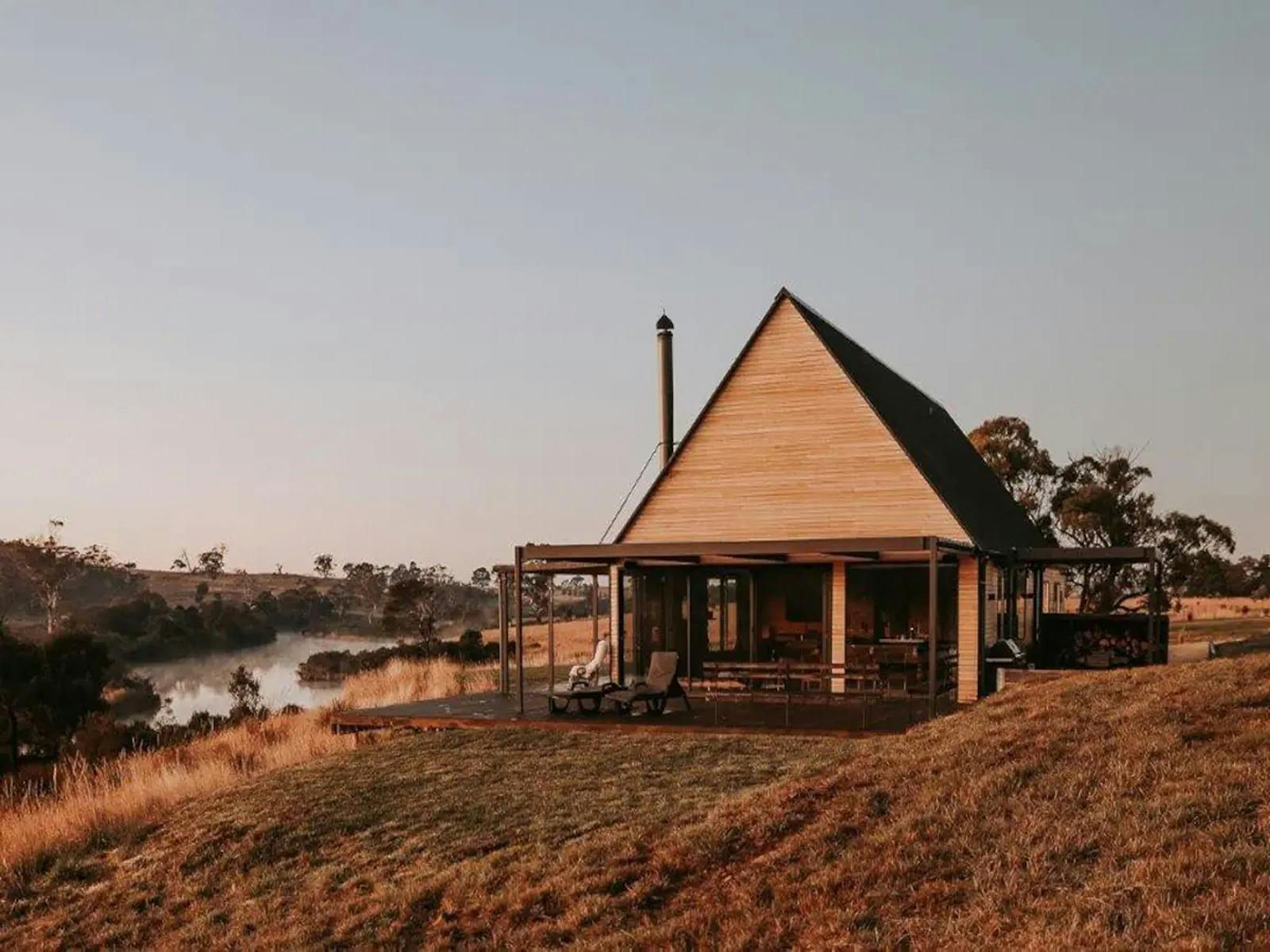 Nestled into the banks of the Swan River is an off the grid luxury lodge powered by the sun and rain. Large sliding doors and windows spill in light and the sounds of the riverbank, drawing you into the panoramic views.
