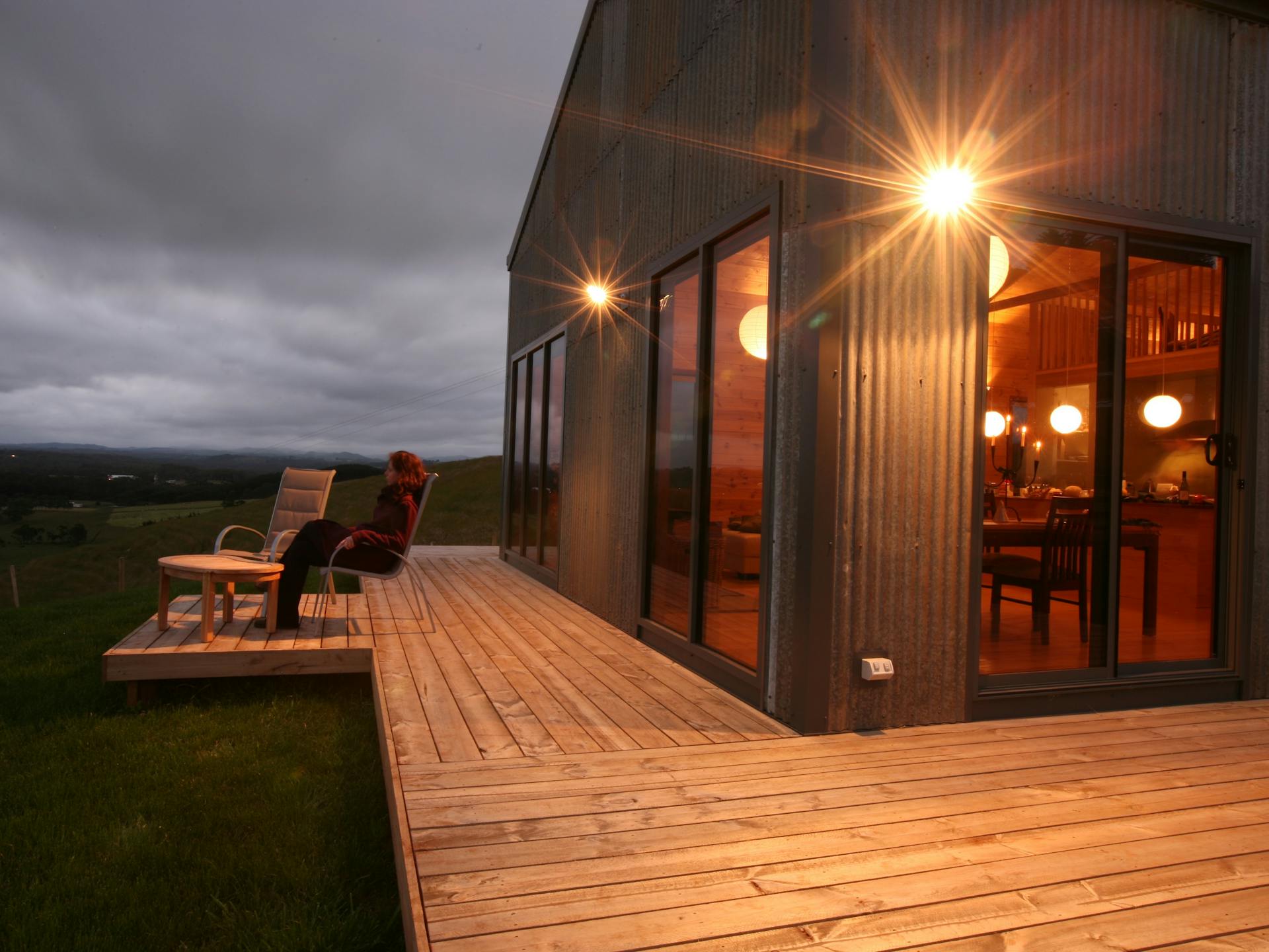 The Aquila Barn caters for two guests and is appointed with a queen-sized bed, hay-loft mezzanine and high vaulted ceilings. There is a fully-equipped gourmet kitchen and open plan living where you can sink into a leather couch by the wood heater. Here, you'll be captivated by the play of wind and light on the rolling fields to the river valley below through floor-to-ceiling double glazed windows. During the evening the luxurious bathroom with floor heating and deep bath awaits, overlooking the pleasant fern garden.