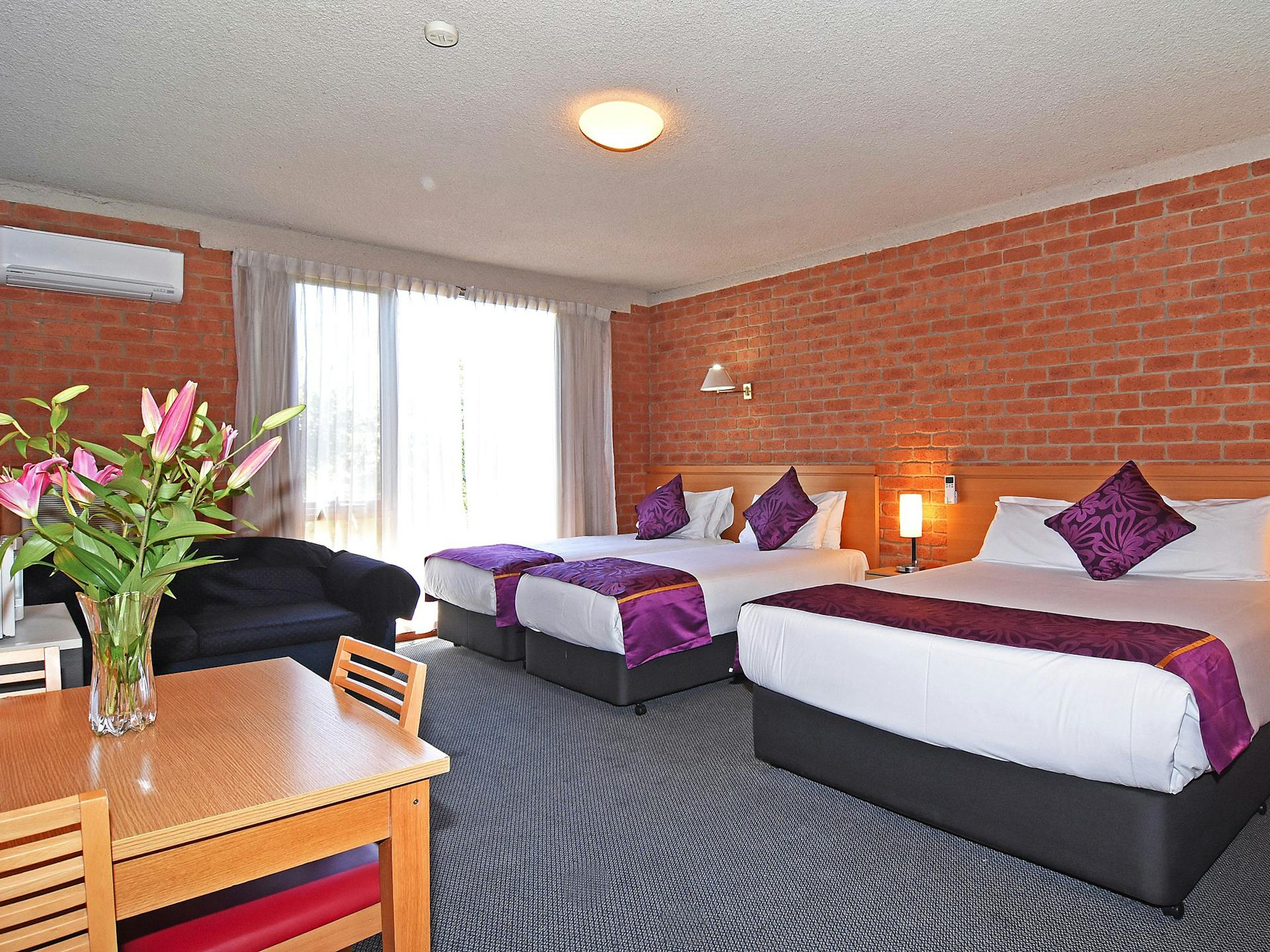 There is ample off street free parking with enough room for buses. Family rooms can be of two combinations being a two bedroom suite or all in one. All rooms are non-smoking some rooms have balcony access for outside smoking.