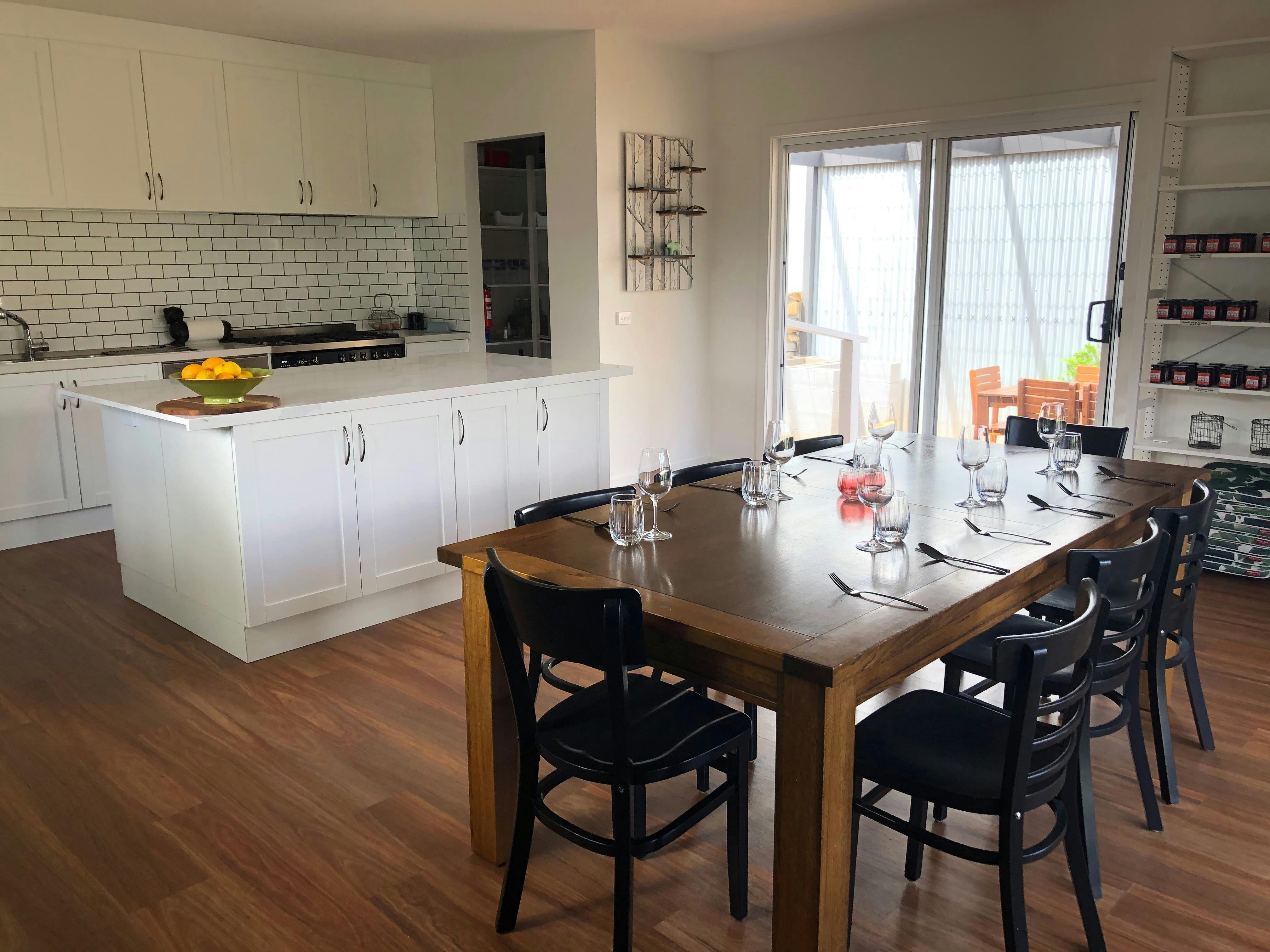 The classes are held in the custom built kitchen studio set in the idyllic gardens. All classes are capped to a maximum of 6 guests to ensure an intimate experience. At the end of the classes all will sit down and enjoy the fantastic meal you have prepared along with some Bellarine Peninsula wine. If the weather is warm, you can soak upon the rays and eat in the courtyard that is next to the kitchen studio.