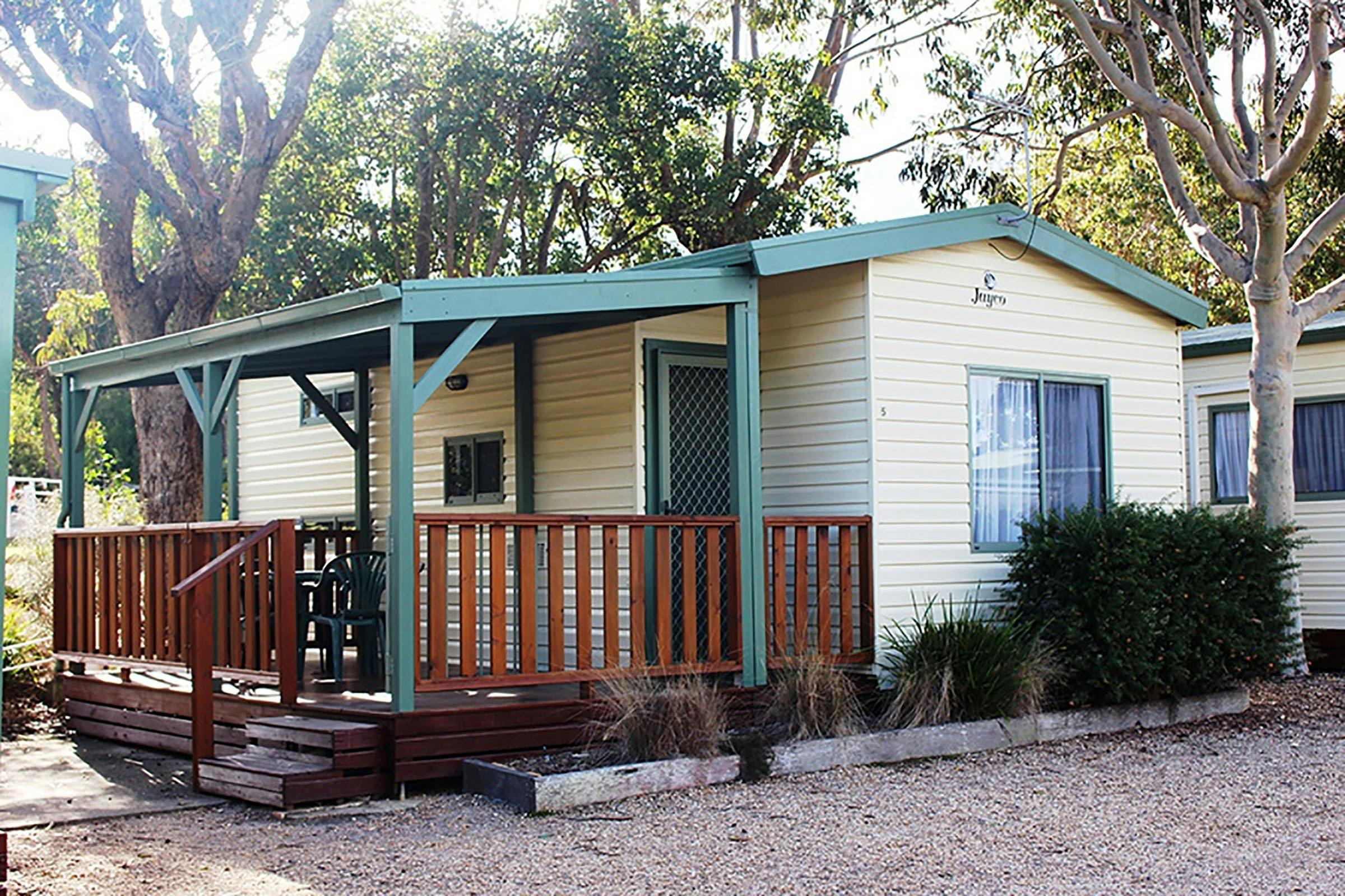 The two bedroom cabins comprise of fully equipped kitchens with ensuite bathrooms and outdoor settings. The Beach Cottage offers a queen-size bed, air-conditioning, television, large deck and barbecue. Deluxe and Holiday cabins include television, air-conditioning, ceiling fans and main bed with linen.