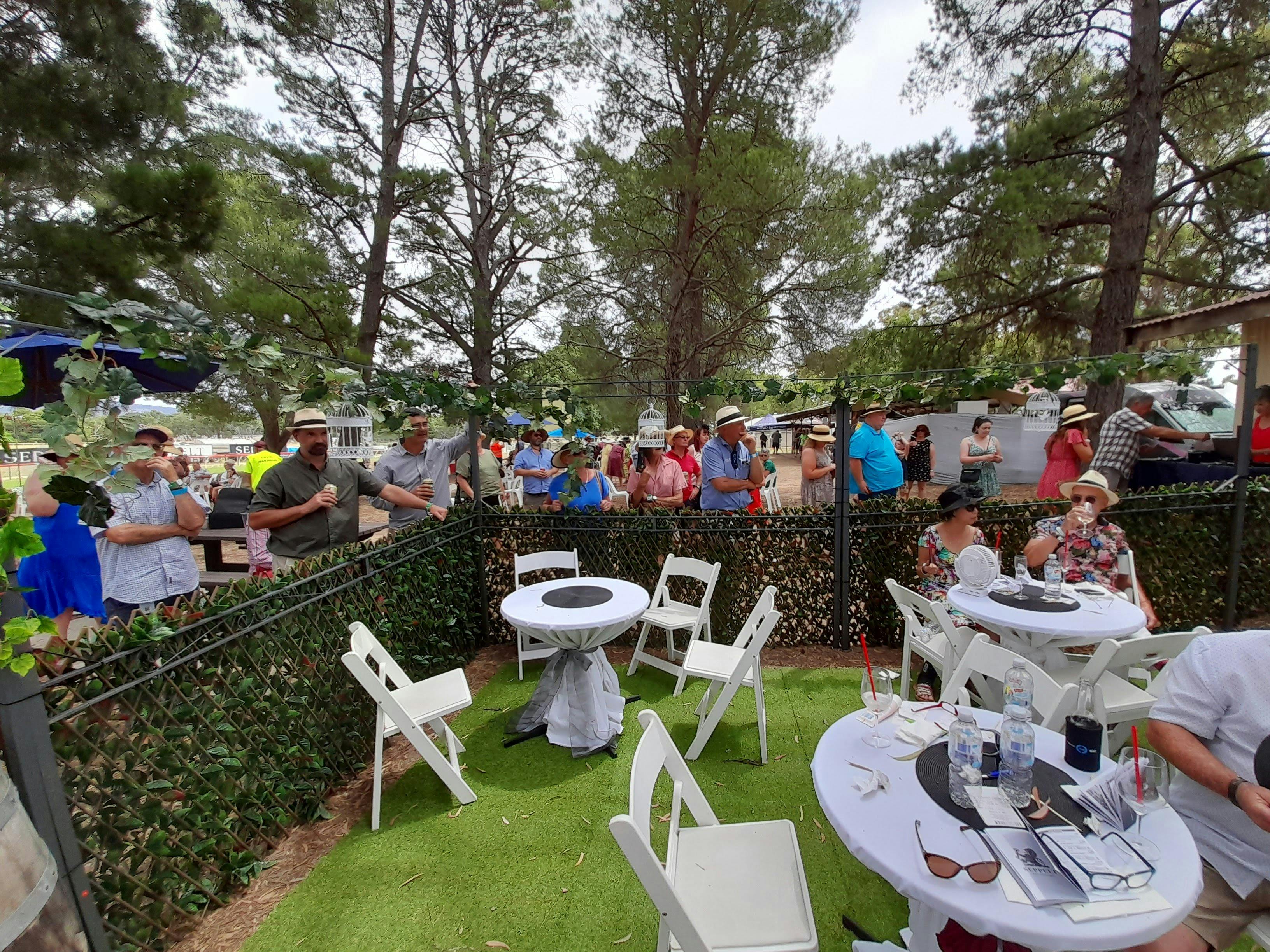 From midday, a short stroll or shuttle takes guests to the racecourse, where their reserved seat awaits. The afternoon unfolds with generous food, flowing wine, and front row views of the Seppelt Great Western Cup.