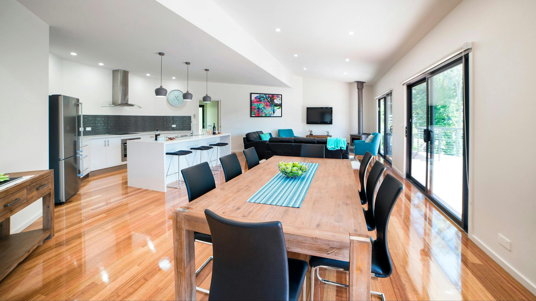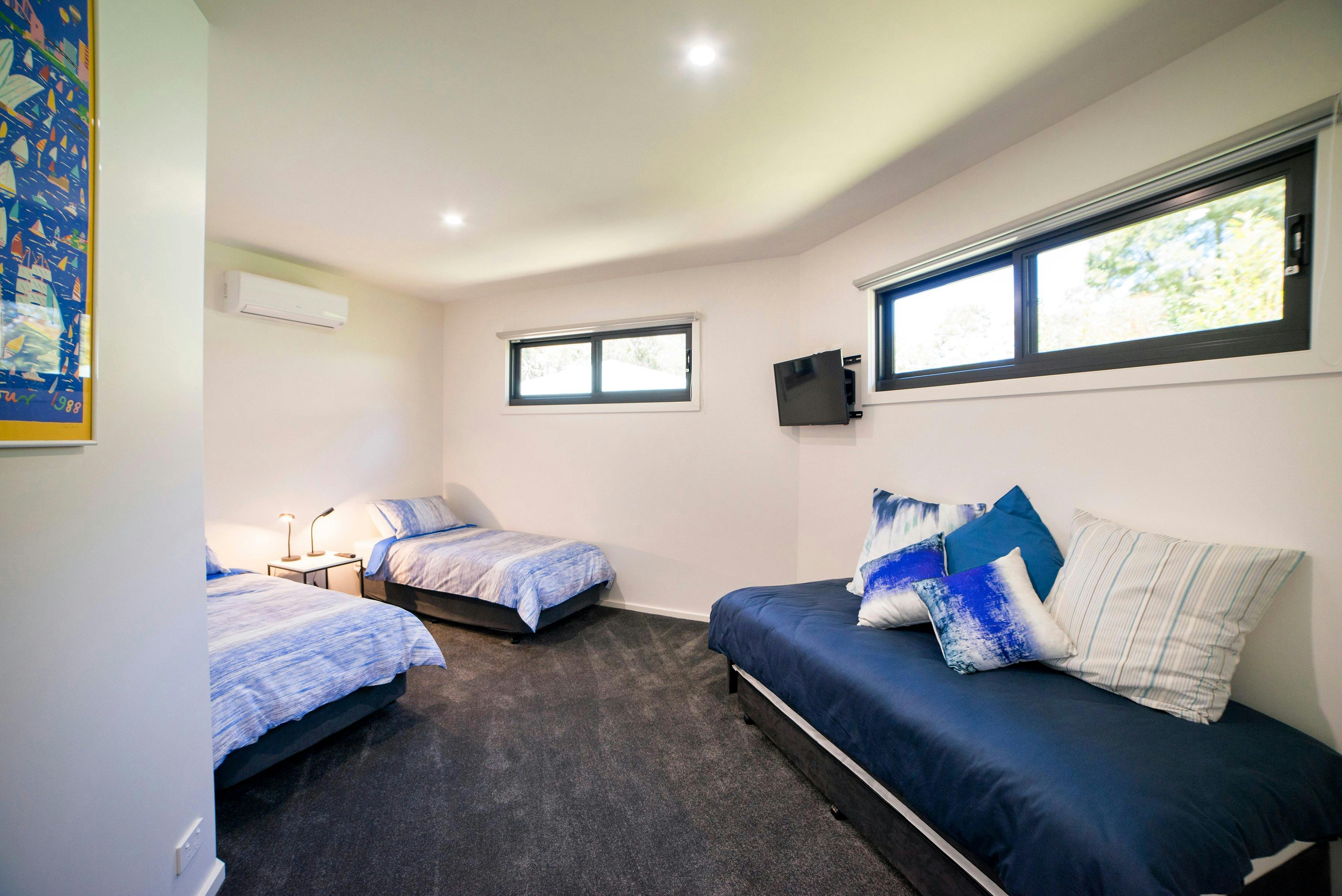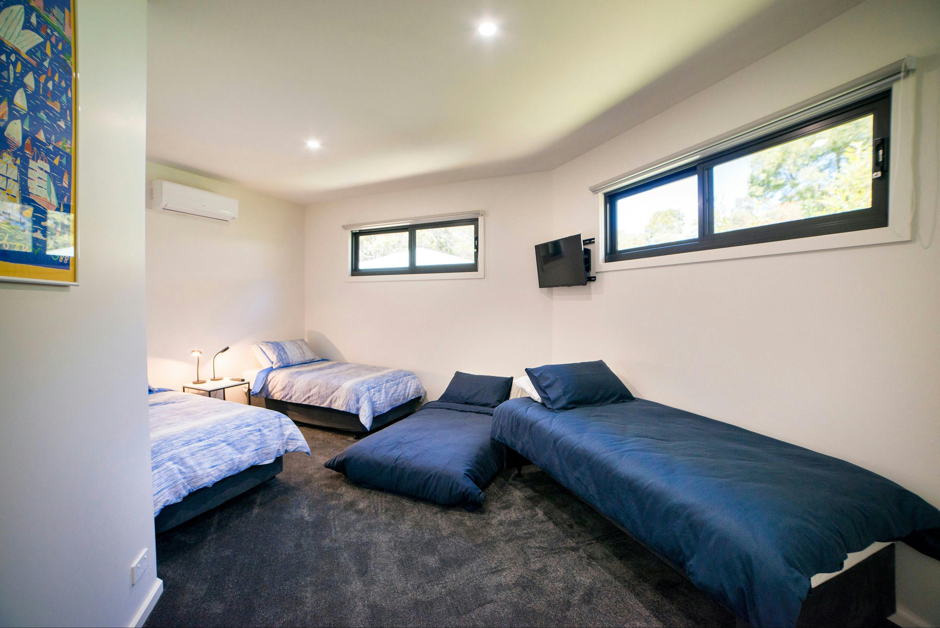Golton in the Gap is a modern, architecturally designed home in the heart of Halls Gap. This beautifully appointed home accommodates up to eight guests in three spacious bedrooms, two with king sized beds and third with four single beds. The large open living, dining and lounge area invites relaxation with modern comfortable furnishings and wood heater.