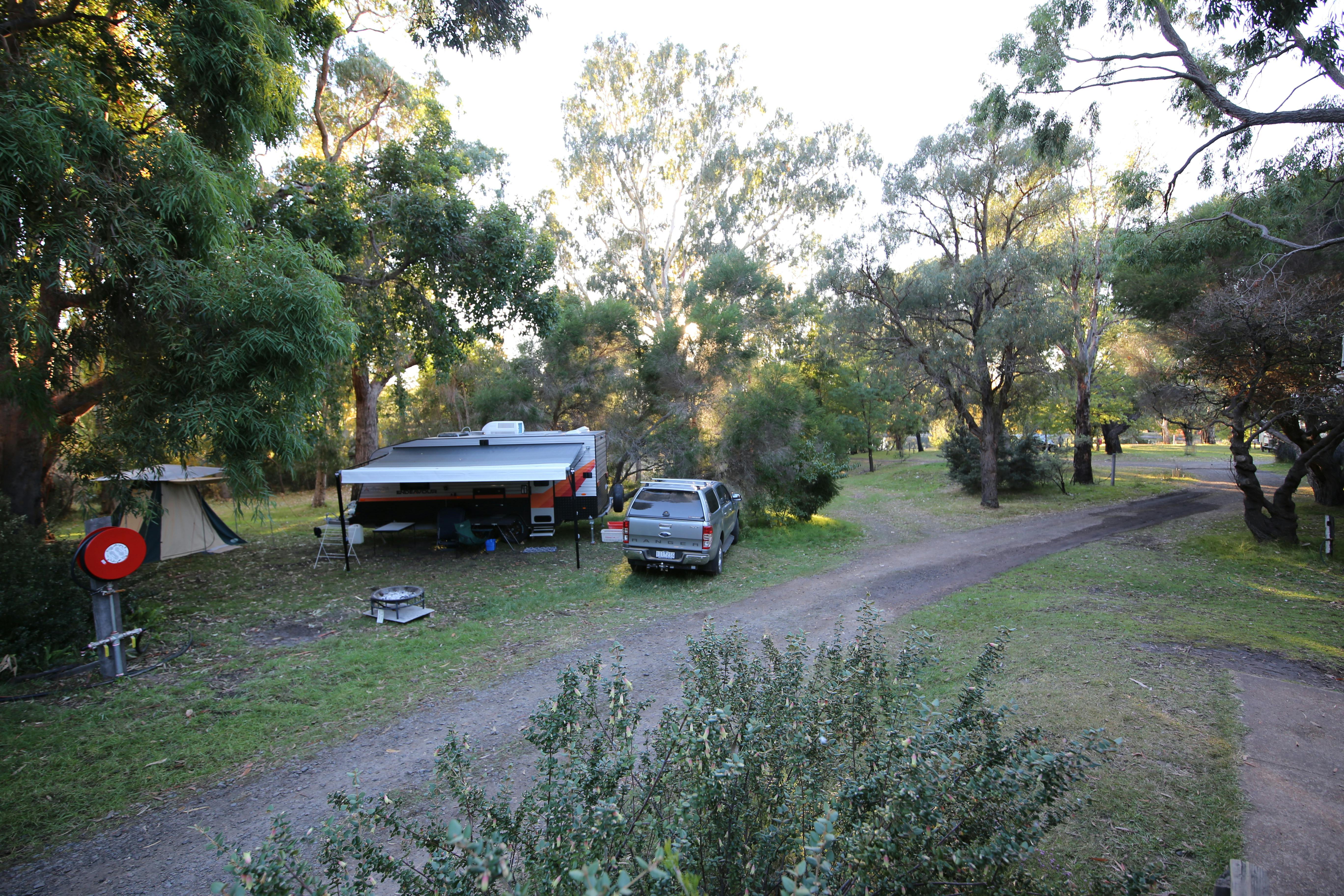 With large to very large grassy sites and over half of the camping ground being spaces between sites and areas for every one to enjoy, Grampians Paradise has room to relax and enjoy the beautiful setting. A to scale site map on the website shows the powered and un-powered sites colour coded over an aerial photo showing the location of the trees and lakes.