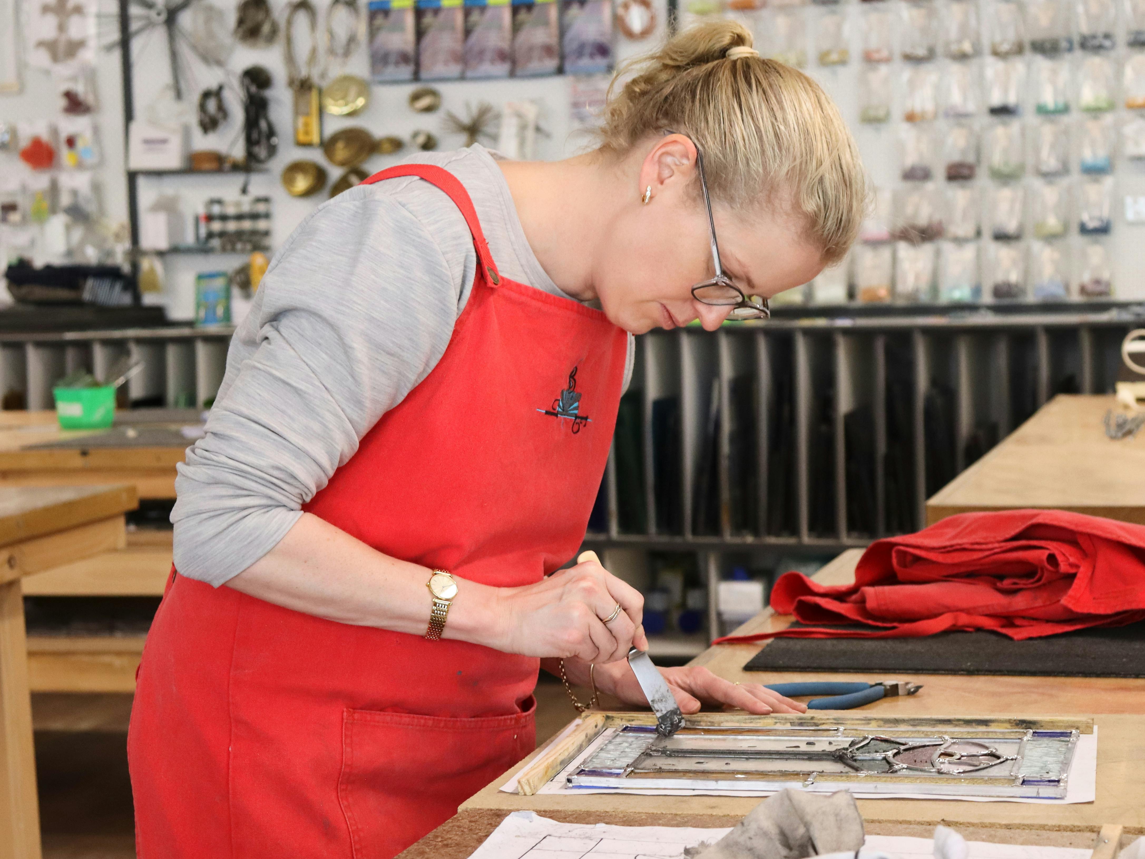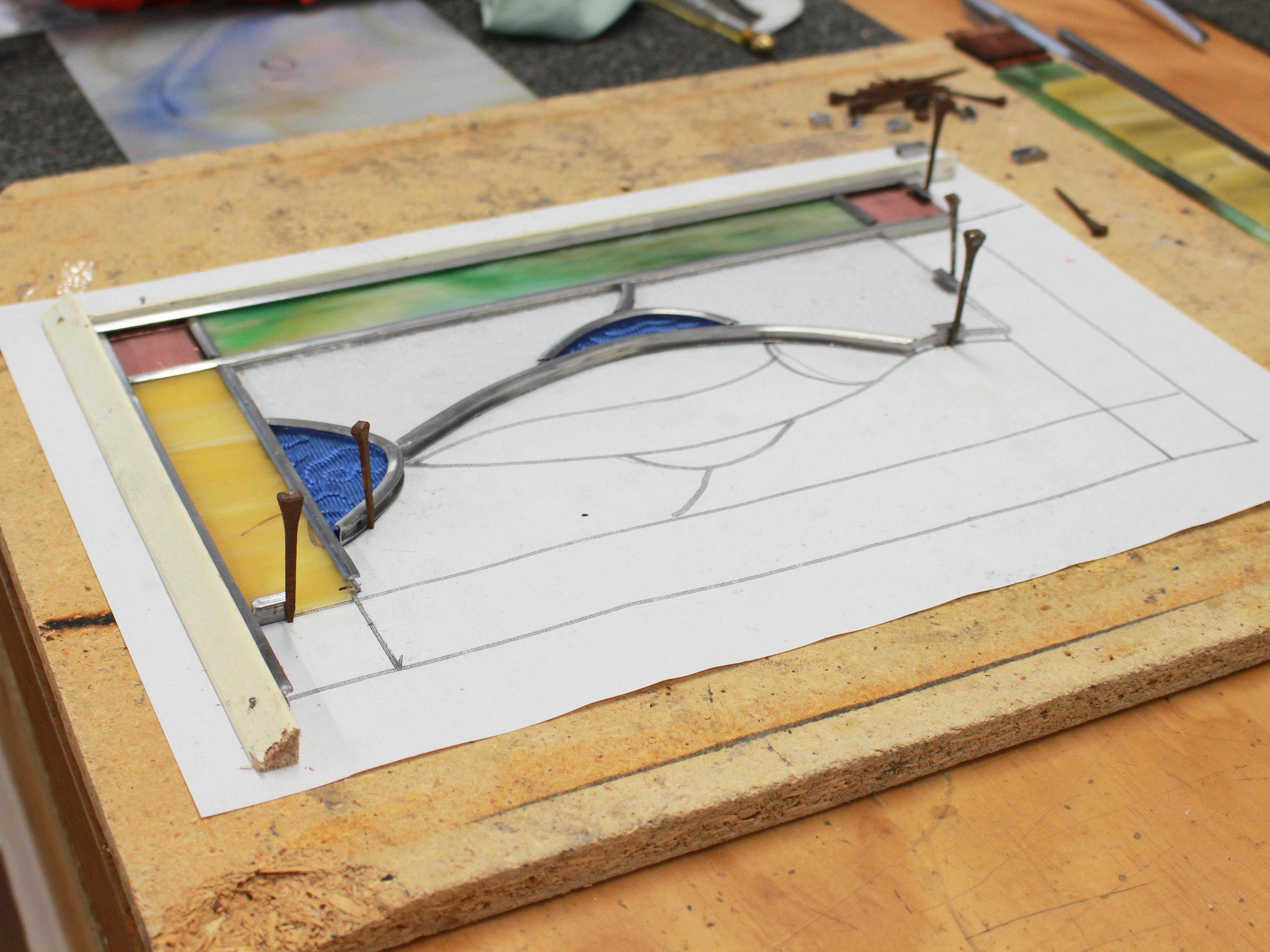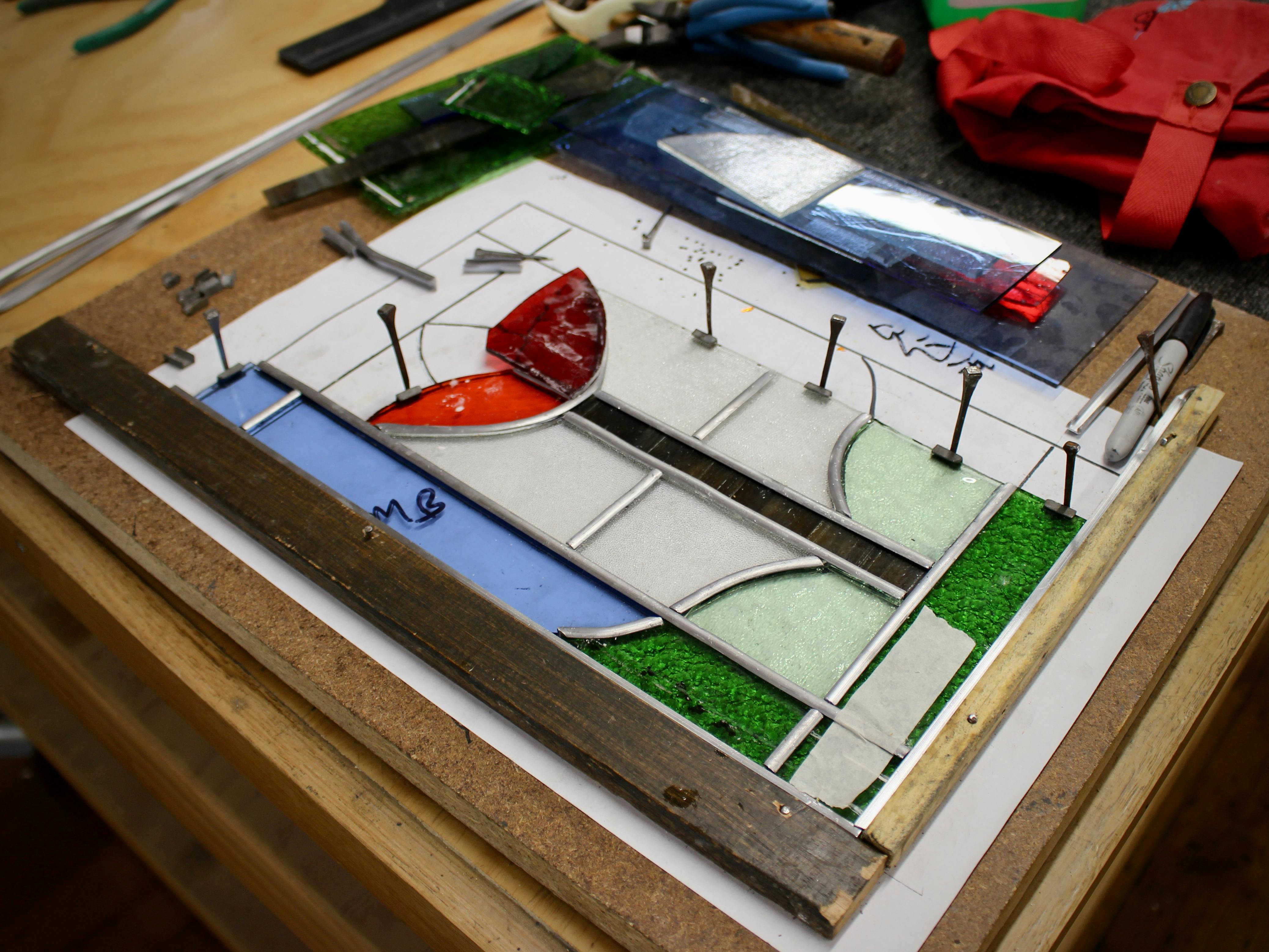 Before work on your panel can begin, you must learn the different ways to cut and shape glass and practice with some scrap. Next it's time to choose your pattern and your tutor will go over the different aspects of glass selection, utilising not only colour but transparency and texture to create depth and interest in your finished piece.