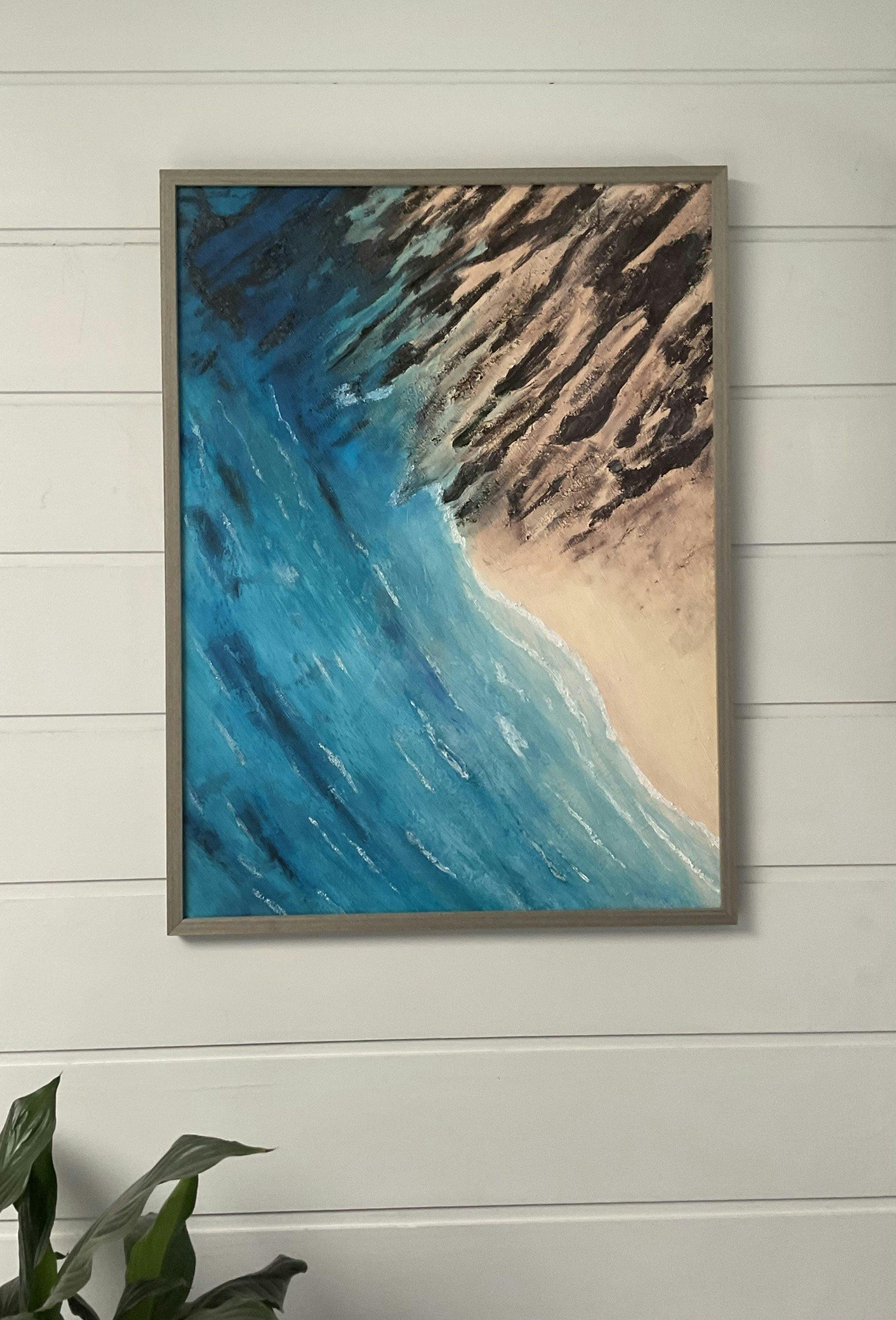 Cairi's passion is the fluidity and unpredictability of the ocean. Her work dances between abstraction and water-inspired themes, often drenched in the blues and greens of her annual pilgrimage to the coast.