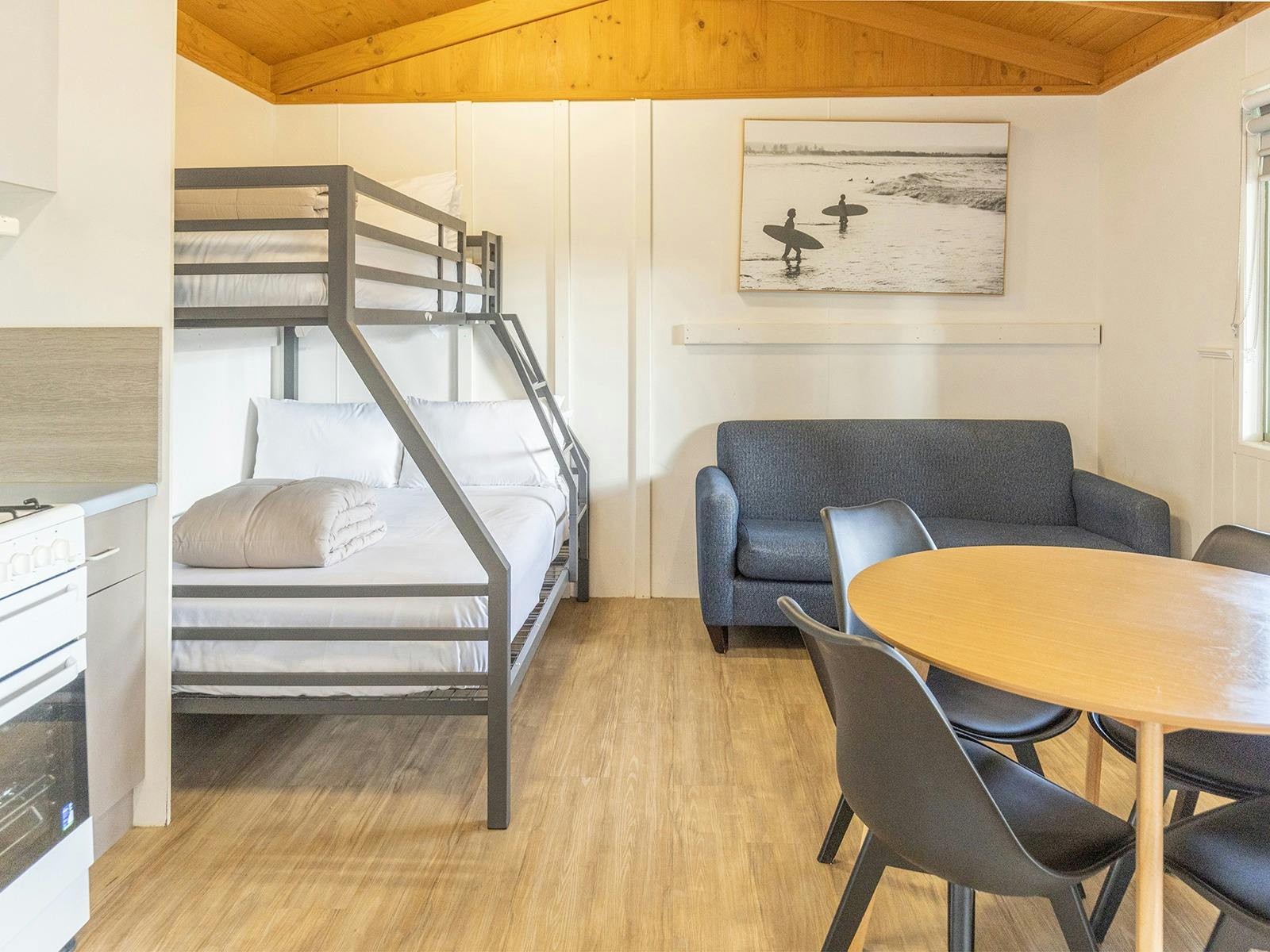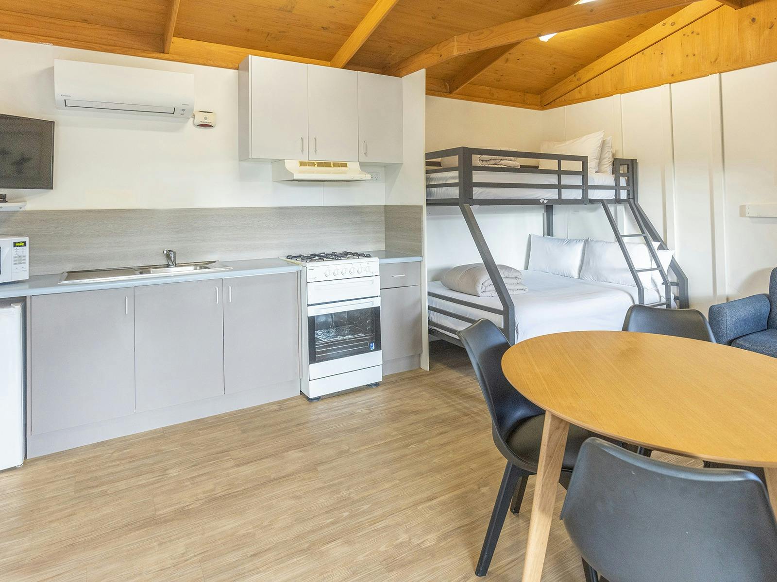 Embrace the comfort and added extras found in our villa, studio and two bedroom cabin accommodation or set up on a powered site for the real caravan or camping experience.