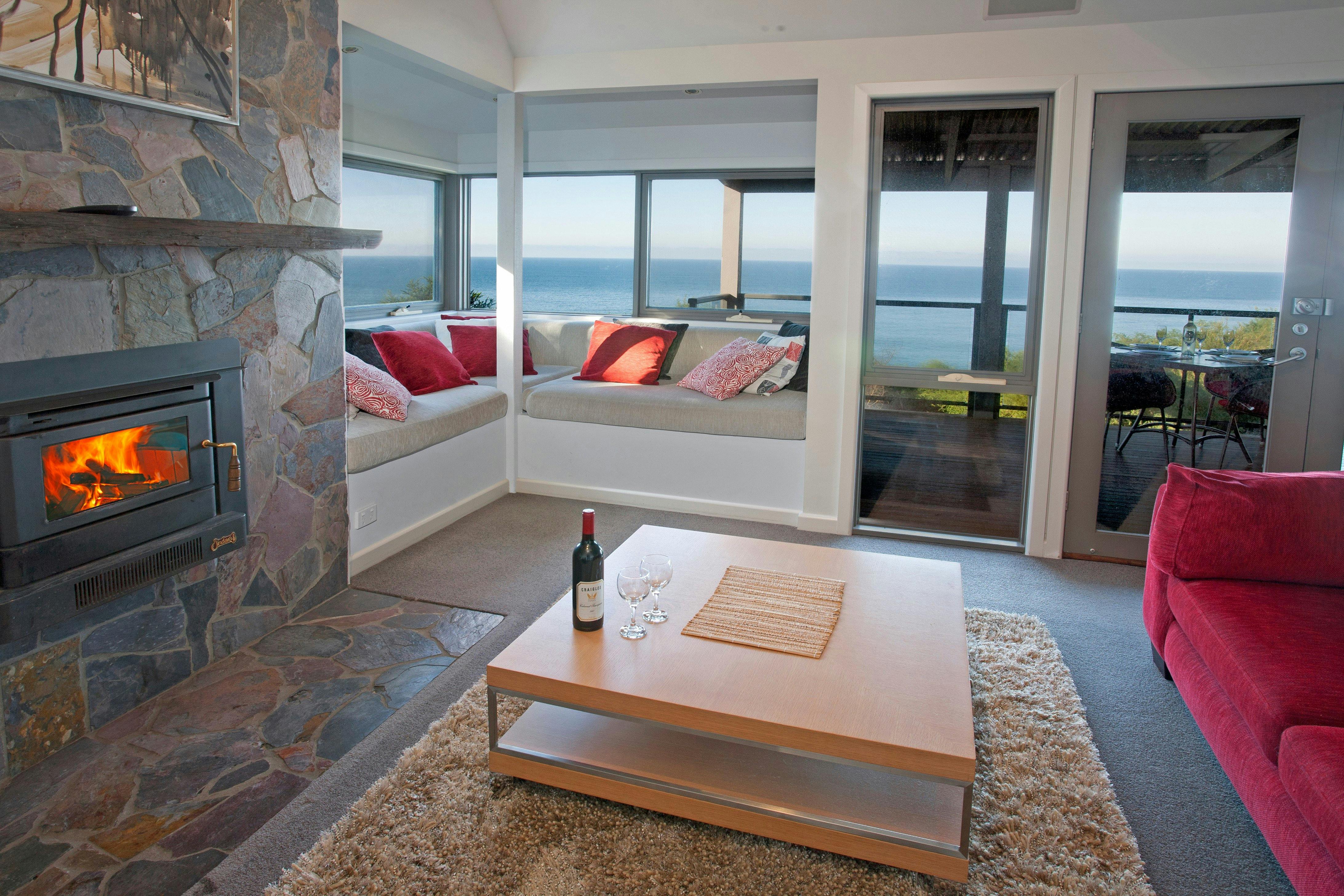 By day, relax on the window seat as waves crash below and dolphins or migrating whales pass by. Curl up with a book, wander the shoreline, or simply let the sea air refresh you. As evening falls, light the wood fire, sink into a spa bath, and retreat to a king-sized bed.
