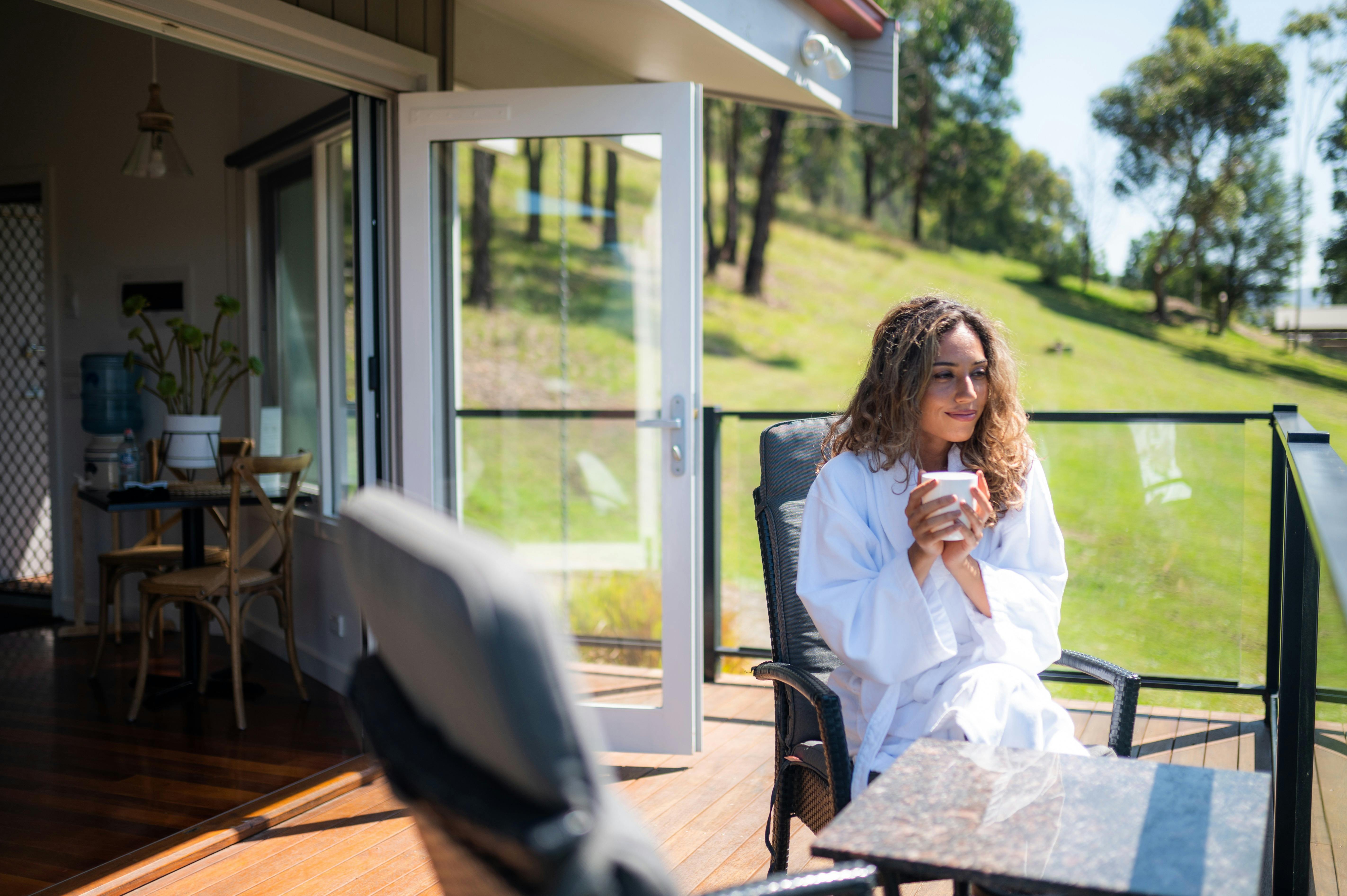 Stylishly decorated, each villa is self-contained, providing views of the property garden or Steels Creek Valley. King bed and a separate sofa, with a foldout double bed allowing accommodation for a maximum of three adults or two adults and two children under ten years sharing the sofa bed. Outstanding villa features include a Bluetooth speaker, large smart television, gas log fire, lounge, kitchenette, furnished deck with barbecue and ensuite with separate shower and double spa bath. Children are welcome in villa accommodation.