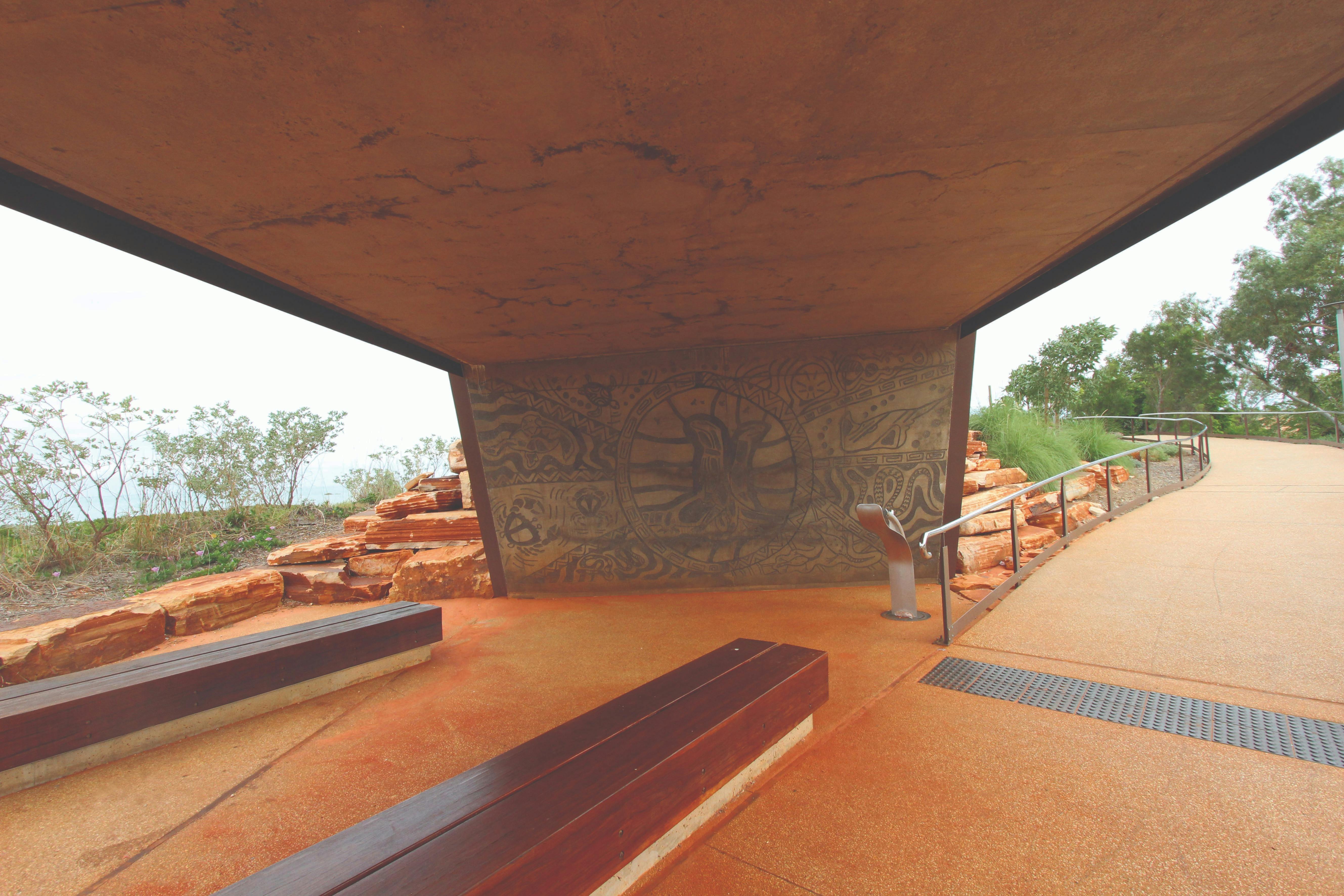 The lookout was collaboratively designed, celebrating the rich Aboriginal history of this significant cultural site. It features artwork and interpretive information created by Yawuru Traditional Owners in conjunction with Broome Senior High School.
