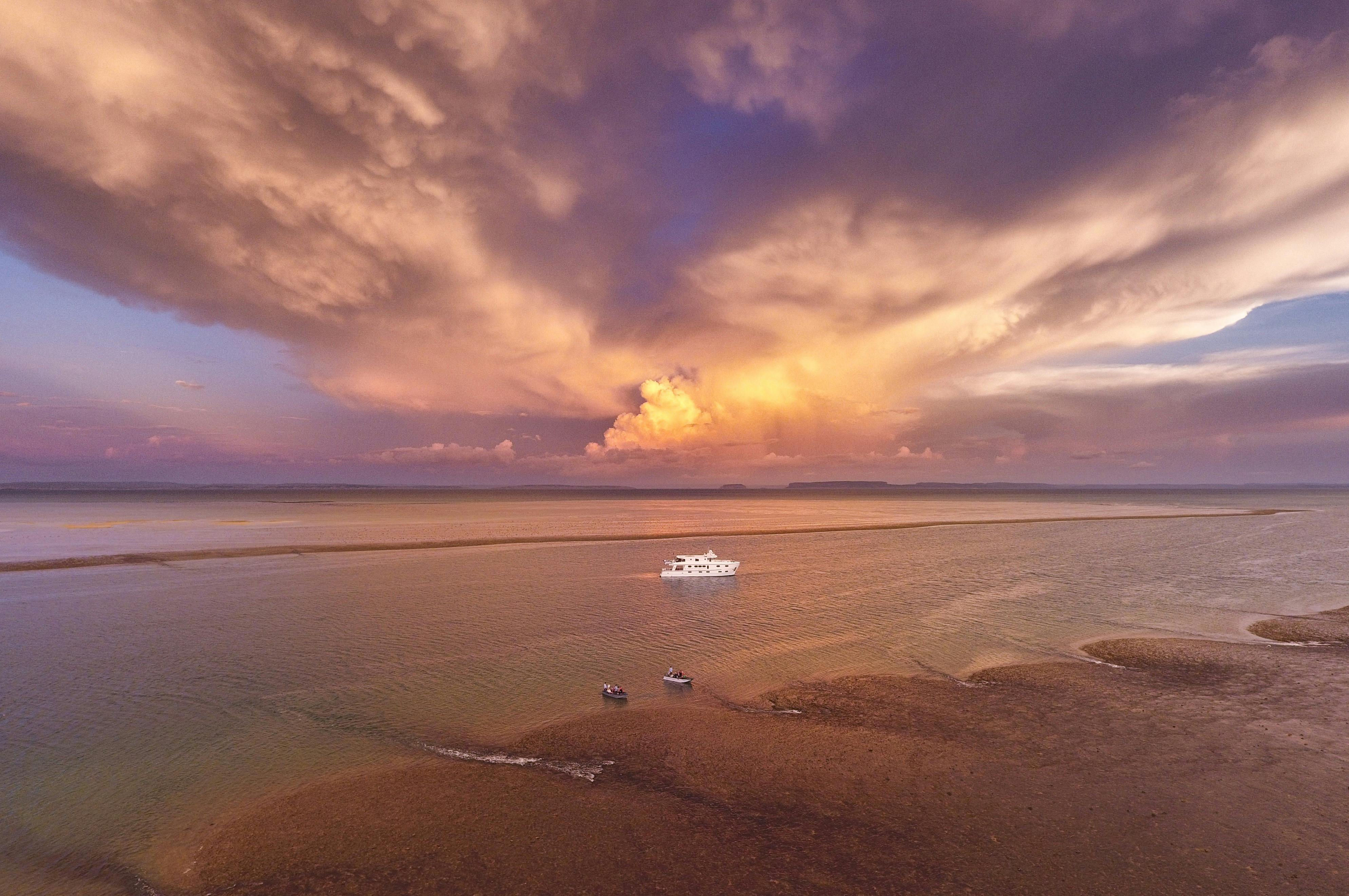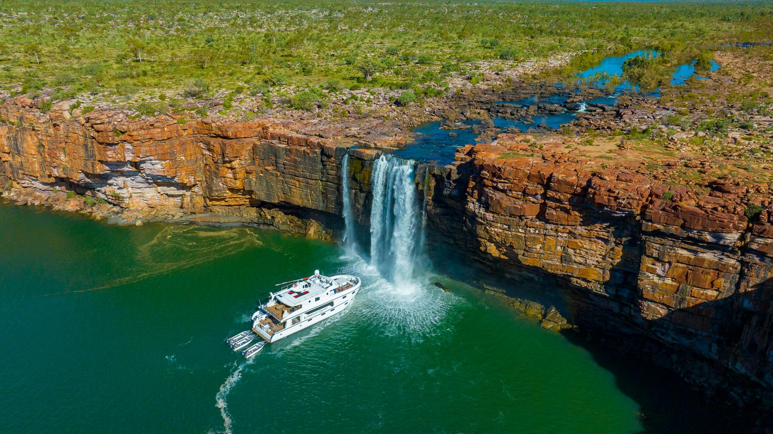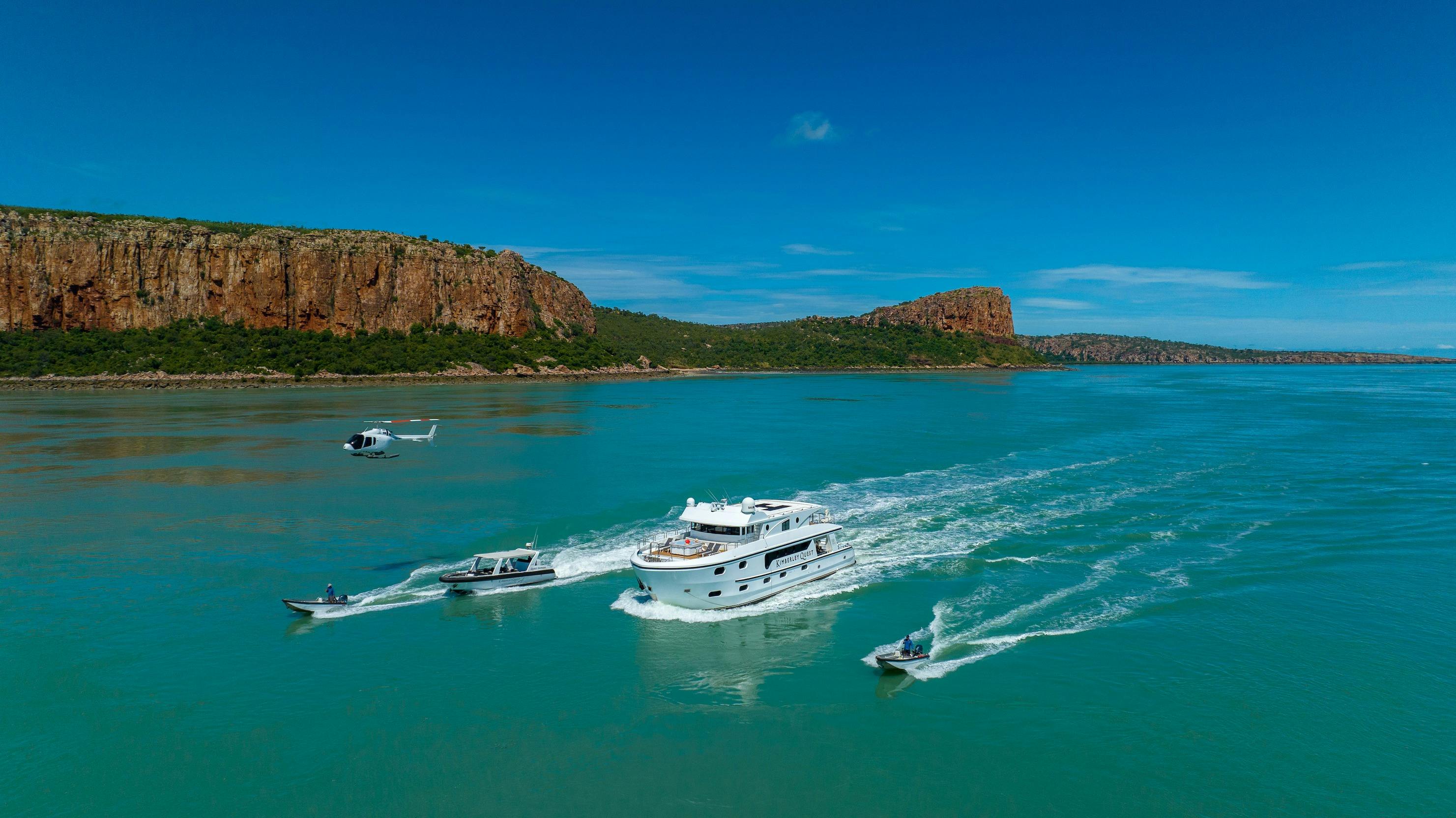 The Kimberley Quest II is a 25 metre fully air-conditioned, custom-built expedition vessel that has been designed for exploring the Kimberley coastline and is equipped with three five-metre excursion tenders (giving the flexibility to tailor-make excursions), shaded 11-metre excursion fast boat to accommodate all guests and guides, Helipad (giving an alternative perspective), spa (to enjoy the sunset and scenery with champagne in hand) and spacious indoor and large alfresco areas (plenty of space to relax and absorb the magnificent Kimberley scenery).