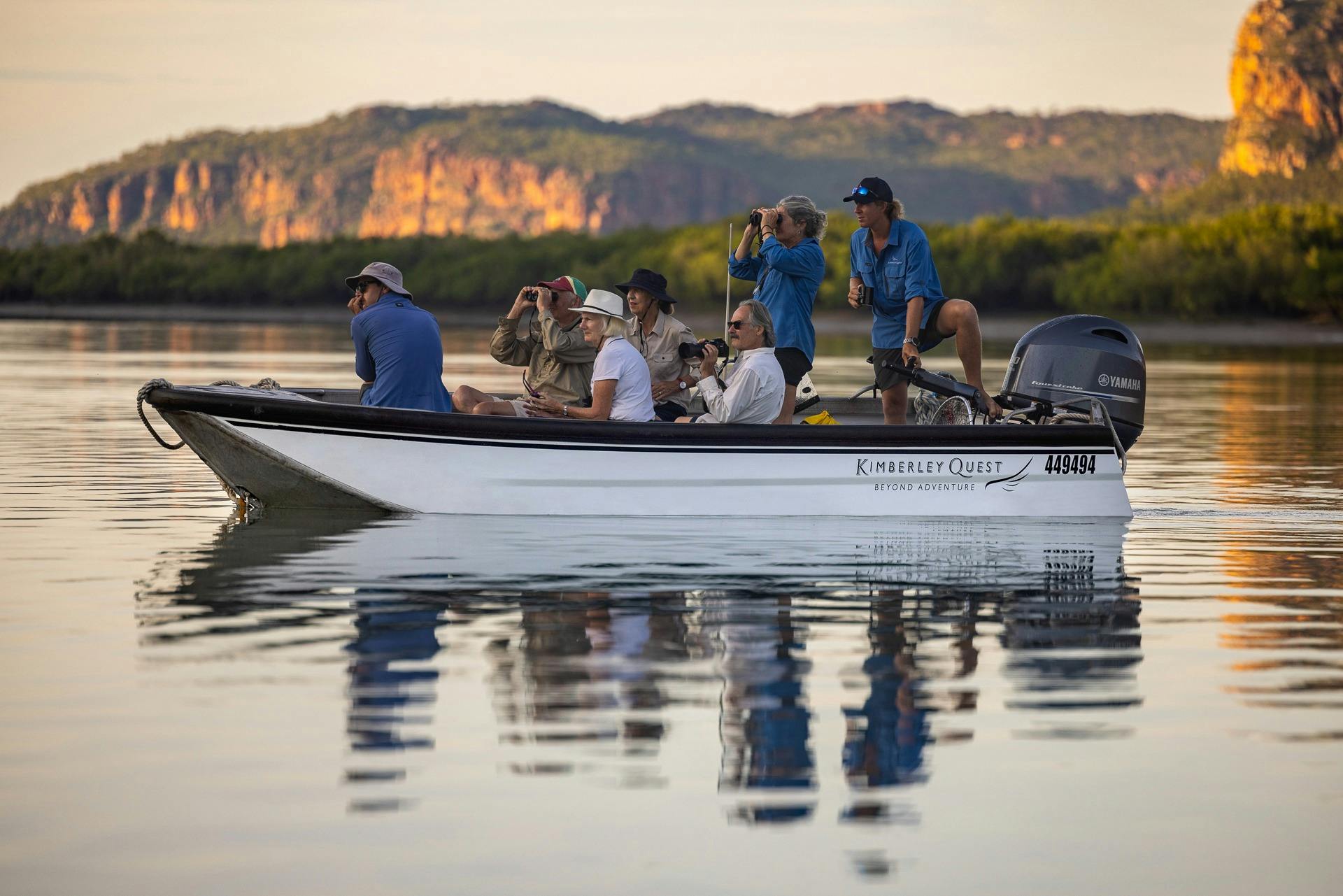 Kimberley Quest II ensures a personalised service with seven crew on board. The crew have a wealth of knowledge and are there to share their amazing insights into the Kimberley region. They are experienced in their roles, friendly and most importantly, passionate about the Kimberley’s deep history, culture and ecology. From ensuring guests have everything they require on and off the boat, to helping land a huge fish, the crew take great pride and pleasure in making lasting cruise memories!