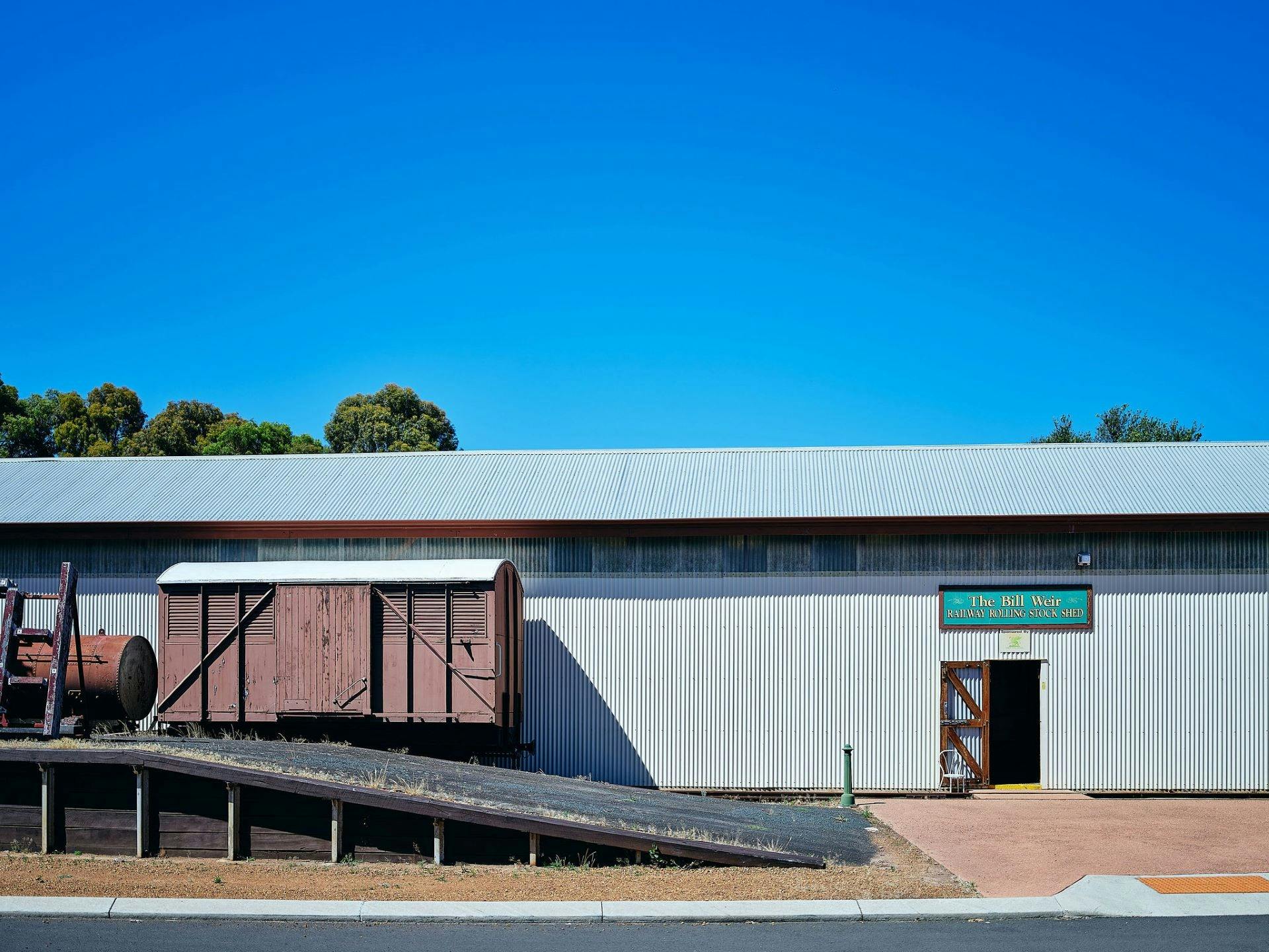 Next door is the Bill Weir Rolling Stock shed where the restoration of rolling stock takes place. Items on display include a First Class Sleeping Coach and a variety of wagons, coal trucks, engines, and more.