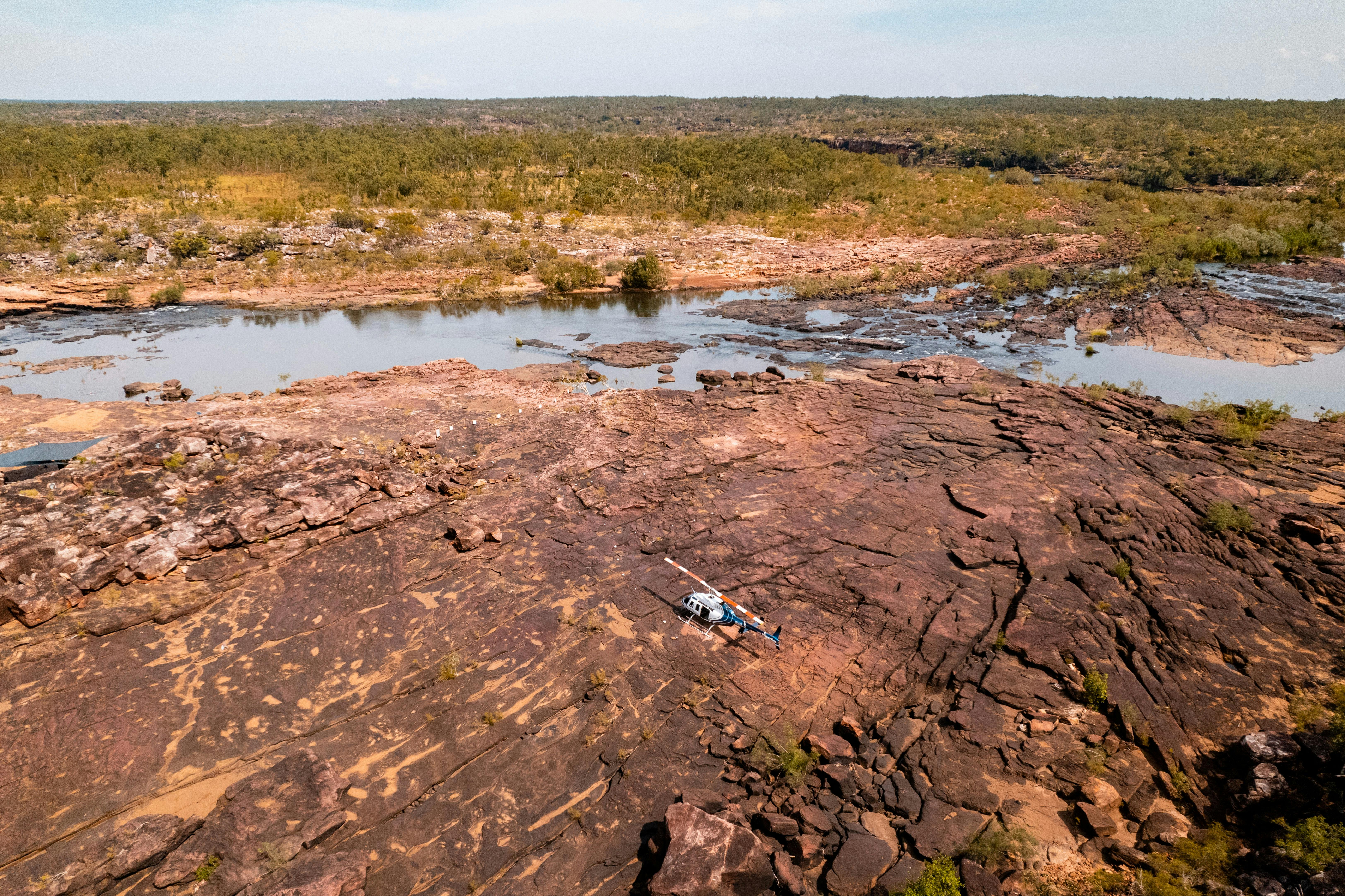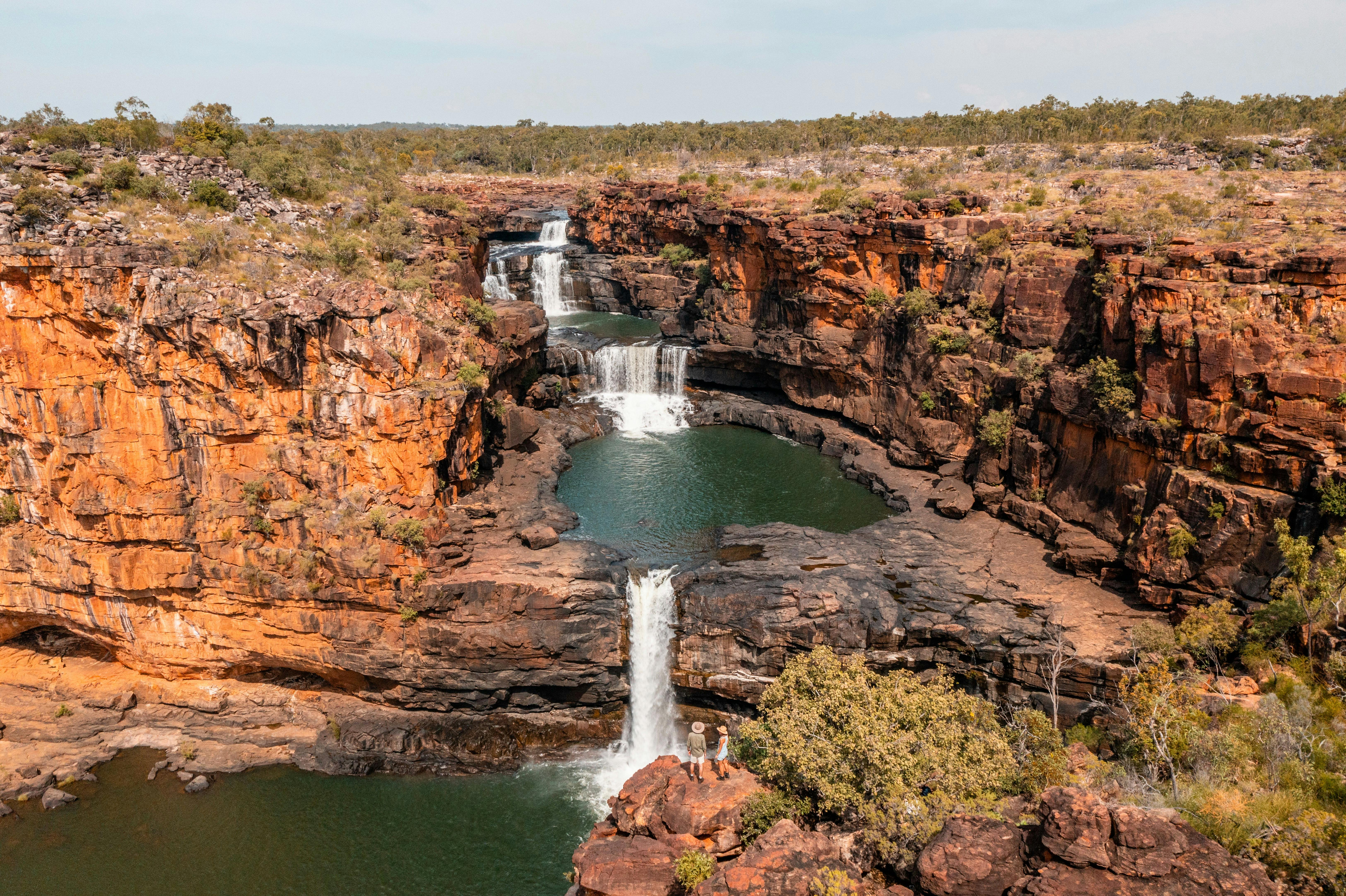 The Mitchell Falls, northwest of Kununurra, is accessed on an Aviair day tour which includes thrilling helicopter flights to drop you off at the start of the hike to the Falls and later collects you, providing spectacular views of the Mitchell Falls. This flight follows the Kimberley Coast over the King George Falls and Berkeley River, covering an area the size of central Europe. Aviair aeroplanes are all air-conditioned and personal touches of chilled sandalwood-scented towels and courtesy airport transfers enhance the experience.