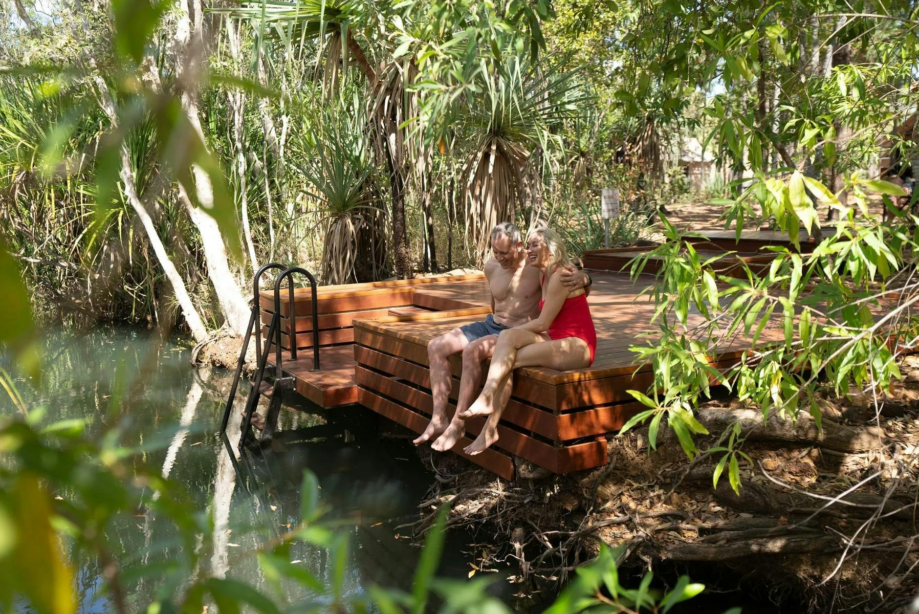 Located on Aboriginal land, the lodge features the Ungolan Pavilion which includes a lounge, bar, library and dining area with gourmet cuisine. Guests can enjoy the palm-fringed, private swimming hole complete with decking for easy access. Savour a full breakfast and three-course gourmet dinner prepared by the Chefs at Mitchell Falls Wilderness Lodge. Packed lunches are available upon request at an additional cost.