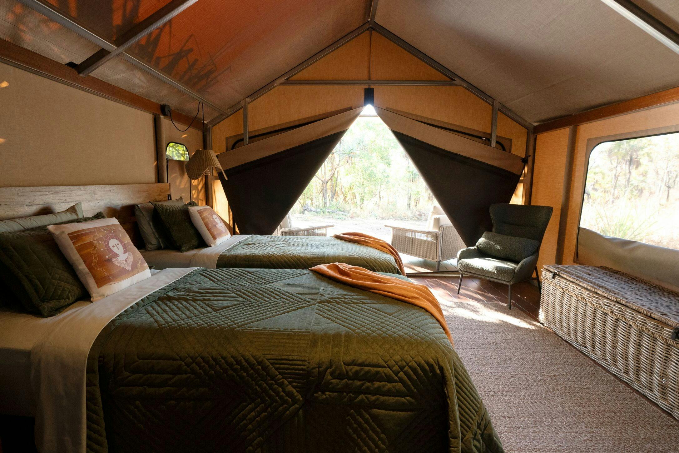 The newly refurbished lodge features 24 spacious, eco-friendly tented cabins with king or twin bedding, private ensuite, and outdoor deck, allowing guests to enjoy the tranquillity of the Kimberley in comfort.