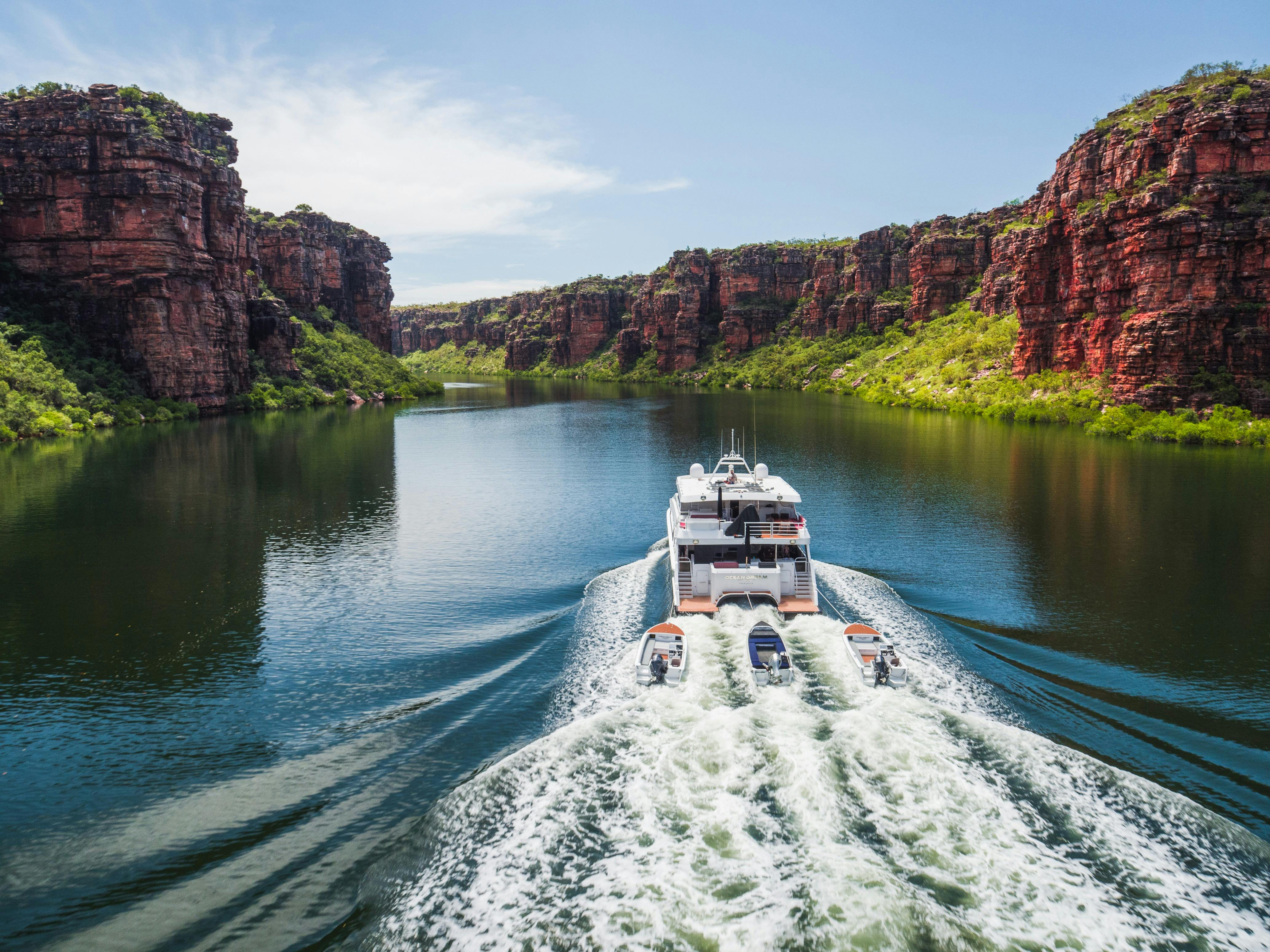 Picture this, you wake up to a spectacular sunrise and with a freshly brewed coffee in hand, you make your way onto the bow to admire the incredible scenery around you. Following breakfast, it’s onto the tenders to spend the morning exploring the coastline. Race through the mangroves, shower under waterfalls, seek out ancient rock art sites and take a dip in a fresh-water swimming hole.