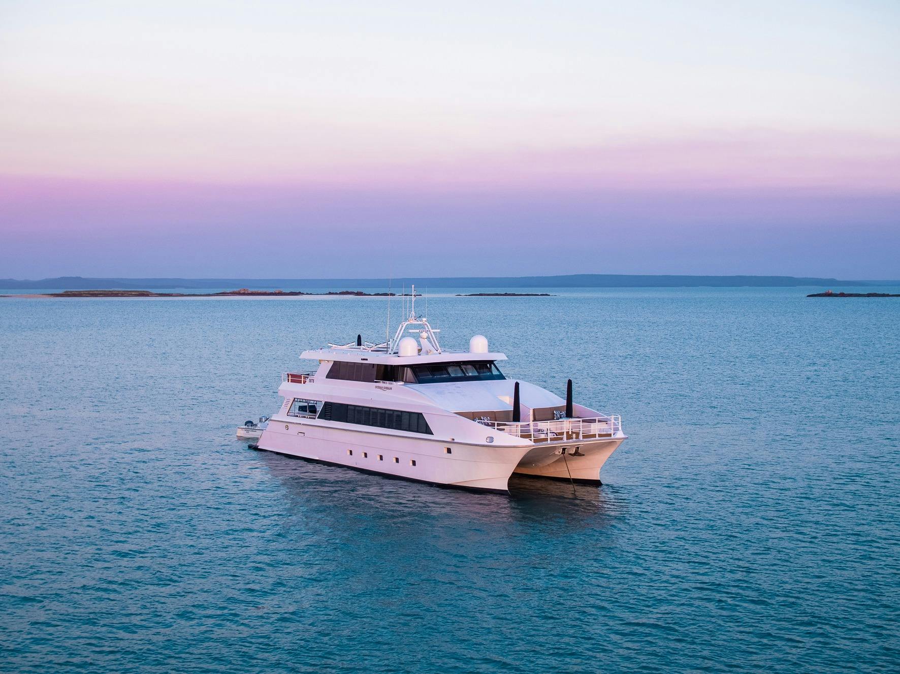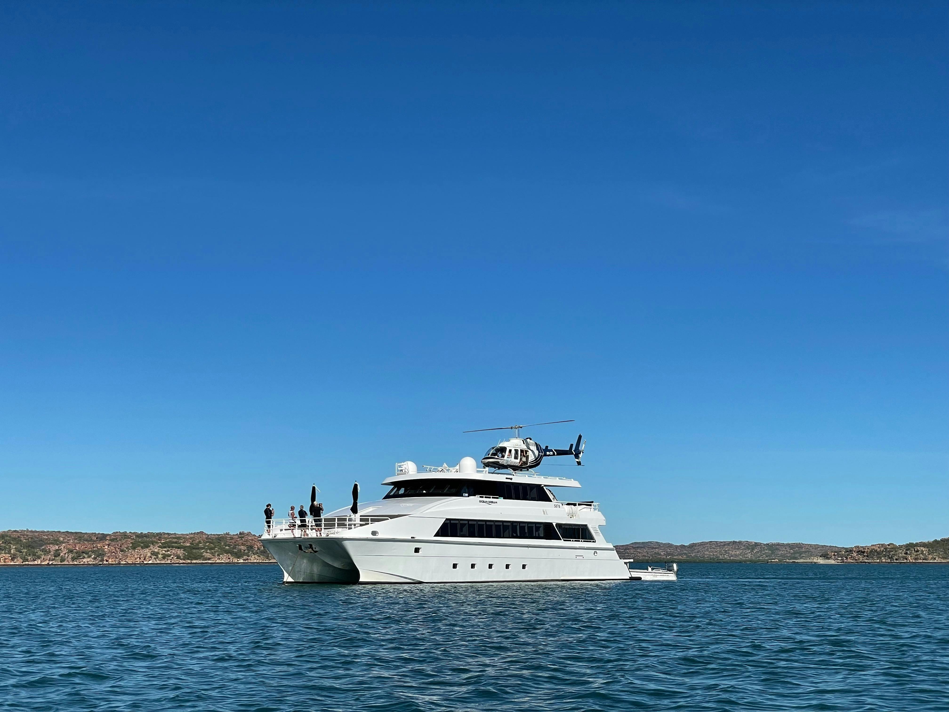 Their luxury vessel is purposely built for navigating the water passages in the Kimberley. Twelve guests can be comfortably accommodated aboard Ocean Dream in six elegant staterooms, all with private ensuites. The open deck spaces and saloon are well-designed for comfort and create the perfect environment for relaxing and watching the world go by.