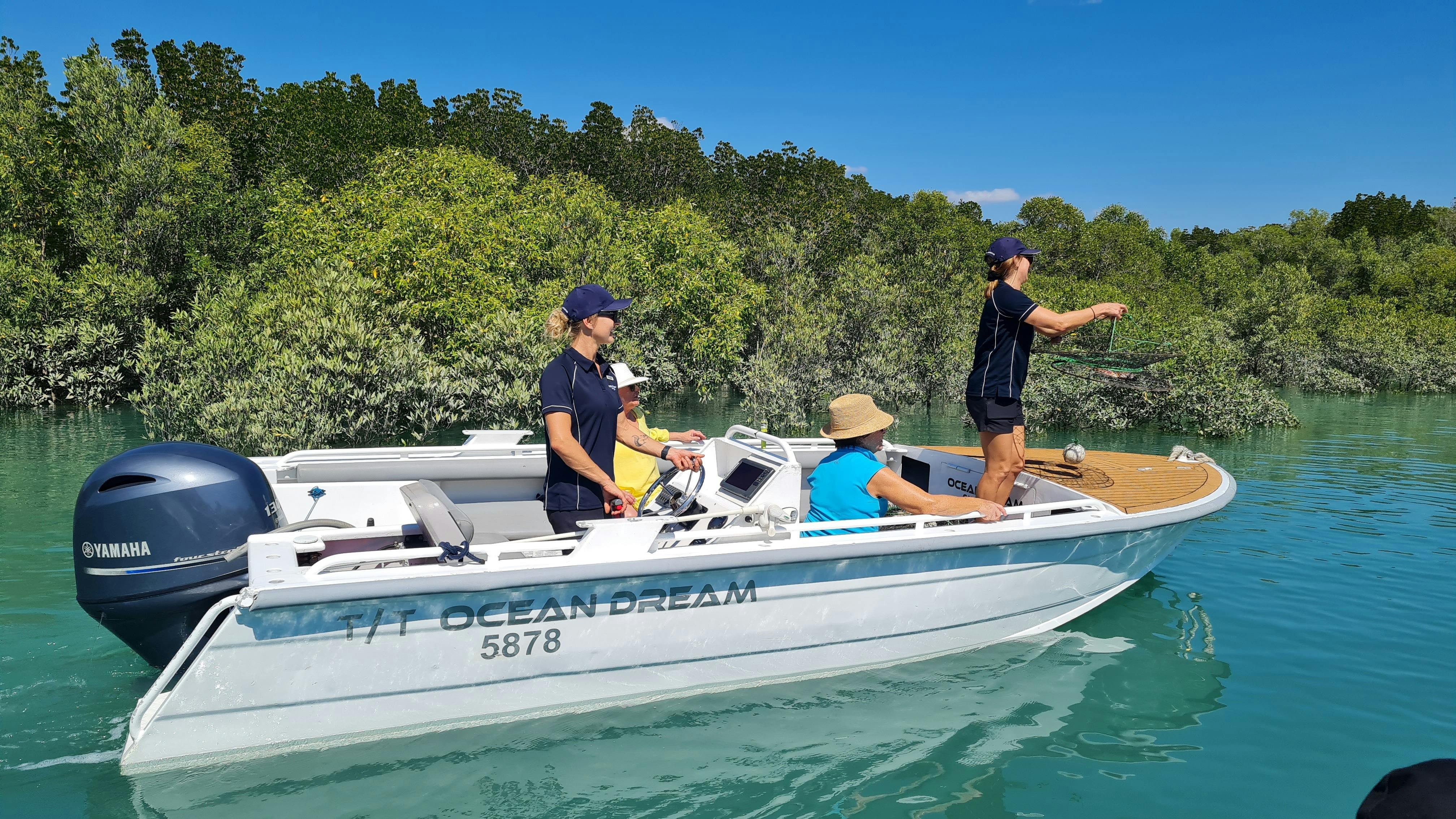 Enjoy a delicious lunch back onboard before you're off again, on the hunt for the elusive barramundi. End the day relaxing with a well-earned glass of champagne or a cold beer on the bow at sunset. The chef prepares your catch of the day for dinner, and then you drift off to sleep in your comfortable bed, preparing for another day in paradise.
