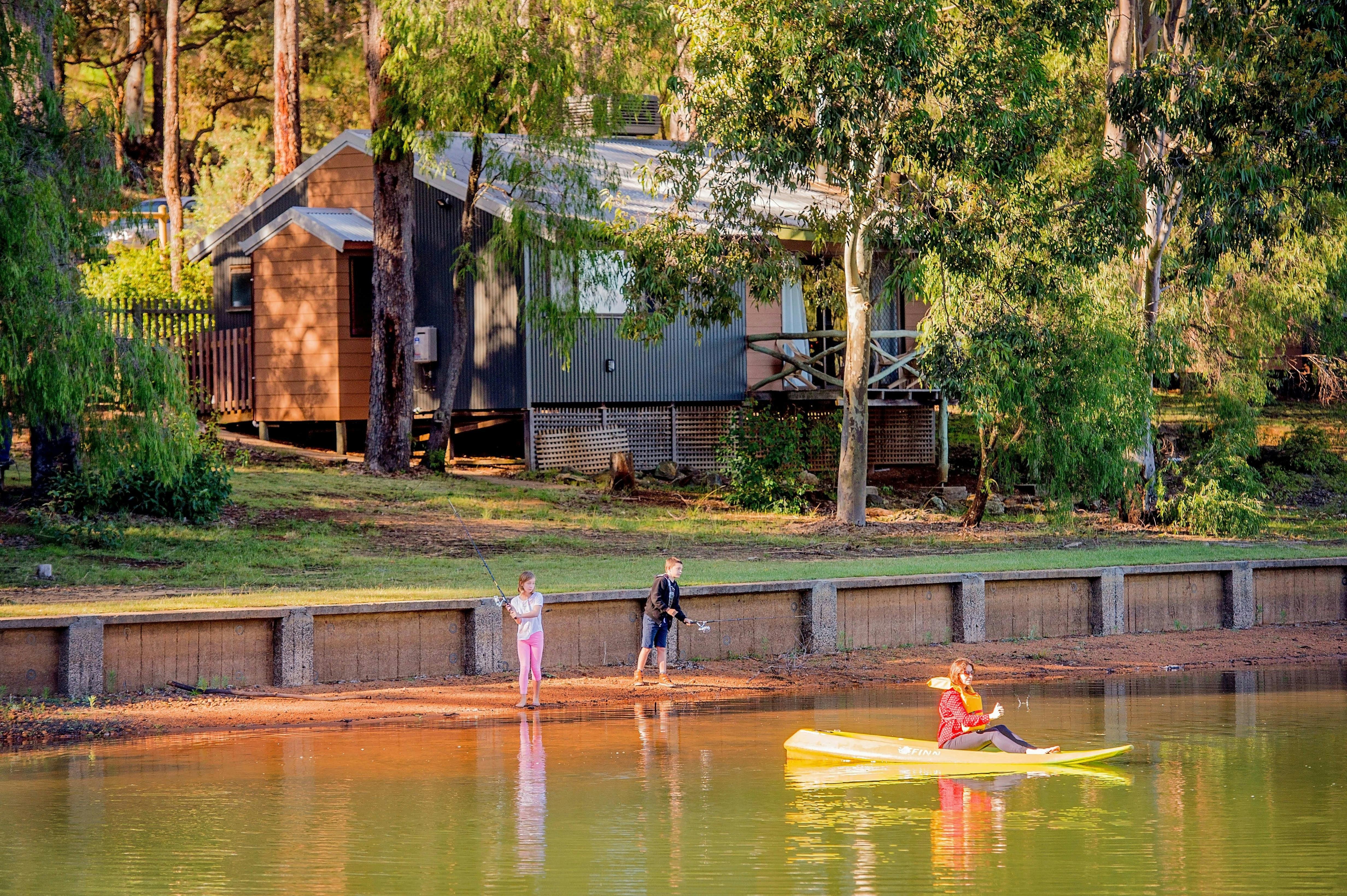 Cook up a gourmet feast in your kitchen or enjoy dinner, breakfast or lunch in the cafe/ restaurant. Fish, kayak or take a walk along the estate’s many forest trails. Fantastic new nature play area for the kids and lawn games for the entire family! Superbly located in the Ferguson Valley, Geographe Wine Region, nearby to Honeymoon Pool, Wellington National Park, mountain bike trails, Munda Biddi MTB and the Bibbulmun Track.