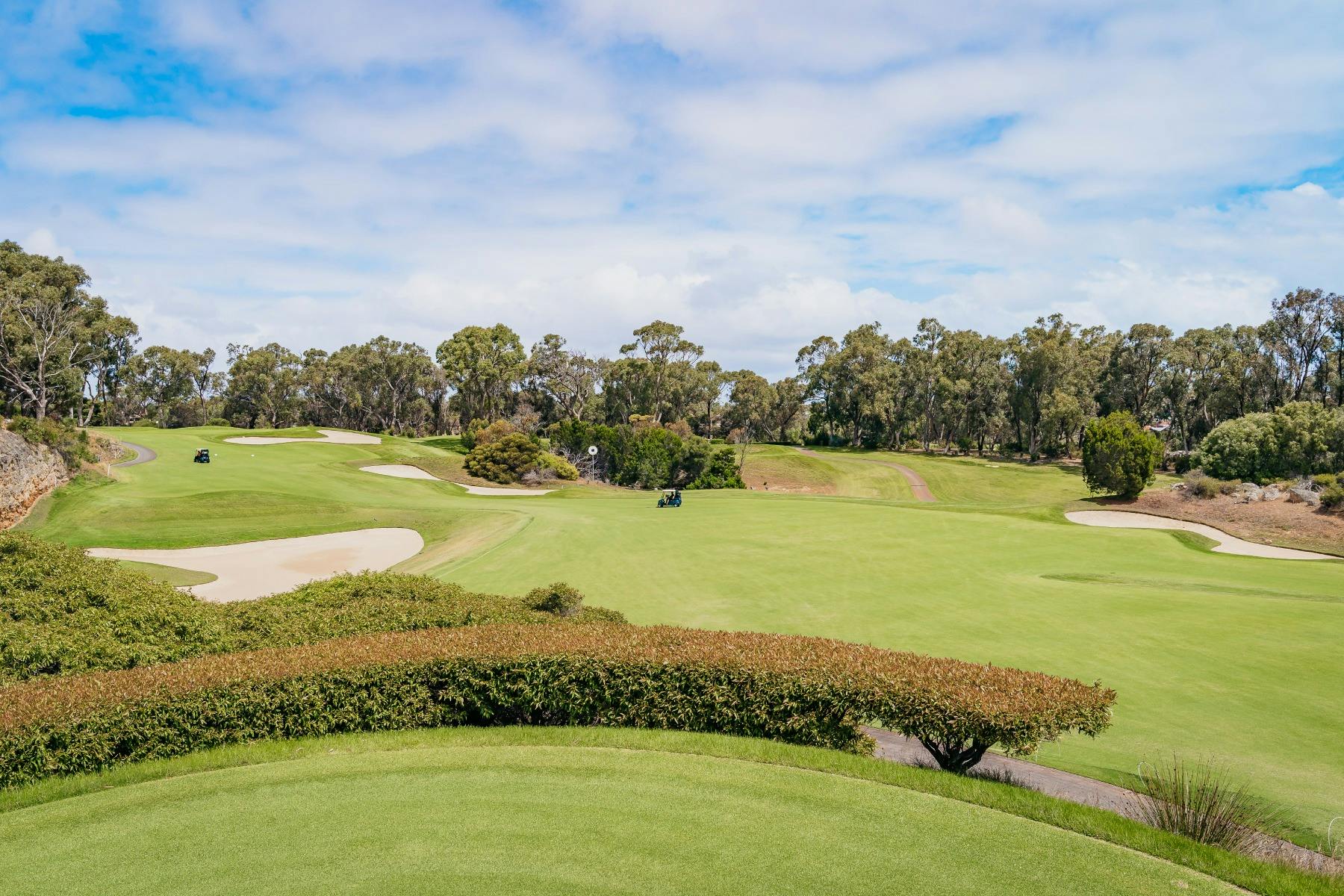 The spectacular golf course in Perth sweeps across dense bushland cuts through steep limestone quarries and skirts picturesque lakes to present surprises and challenges at almost every turn.