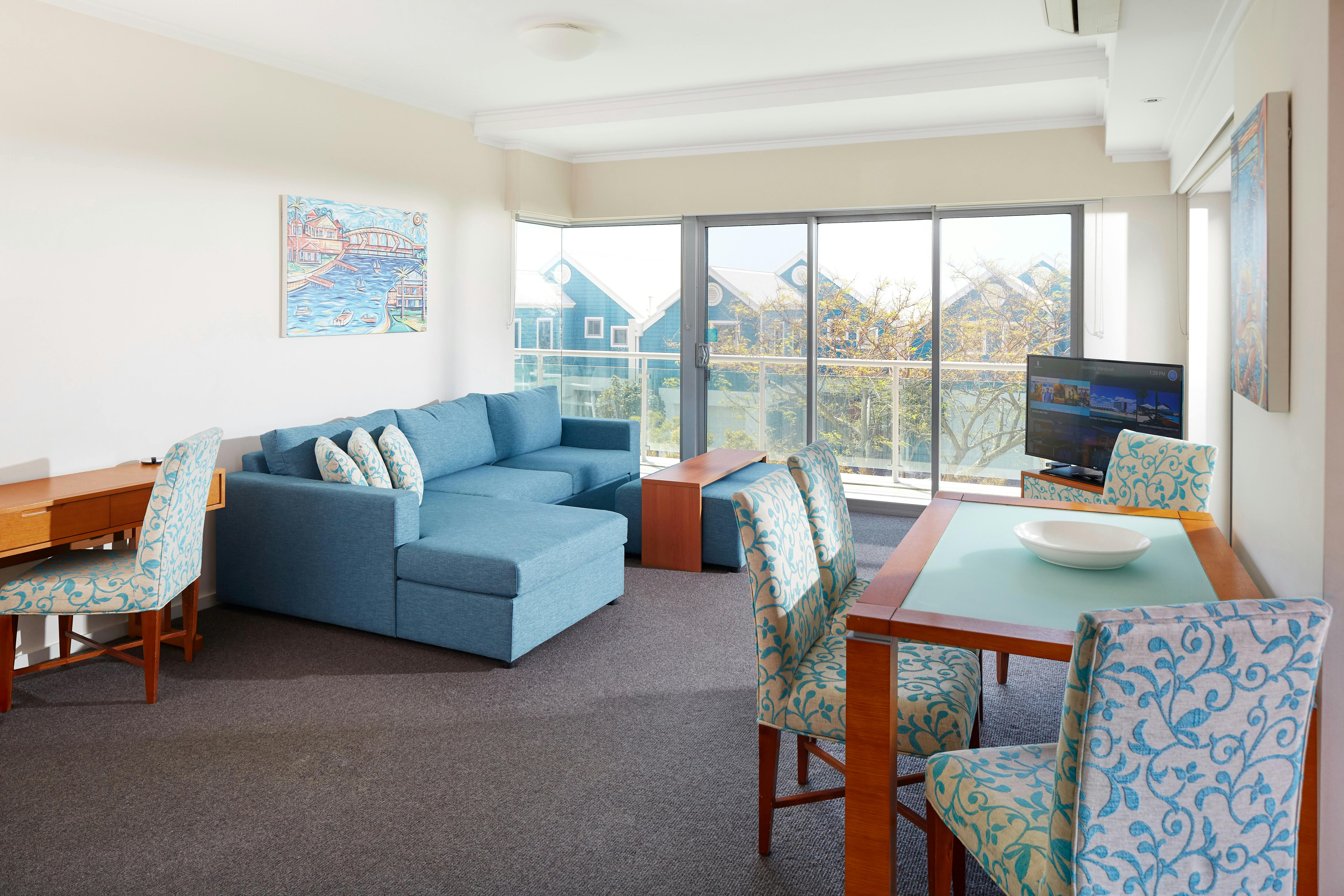 Seashells Mandurah offers a choice of one and two-bedroom fully self-contained apartments and luxury beach villas plus a luxury three-bedroom penthouse apartment. Most feature panoramic views of the Indian Ocean or Marina. Apartments are spacious, light, and airy and furnishings are modern with touches of luxury.