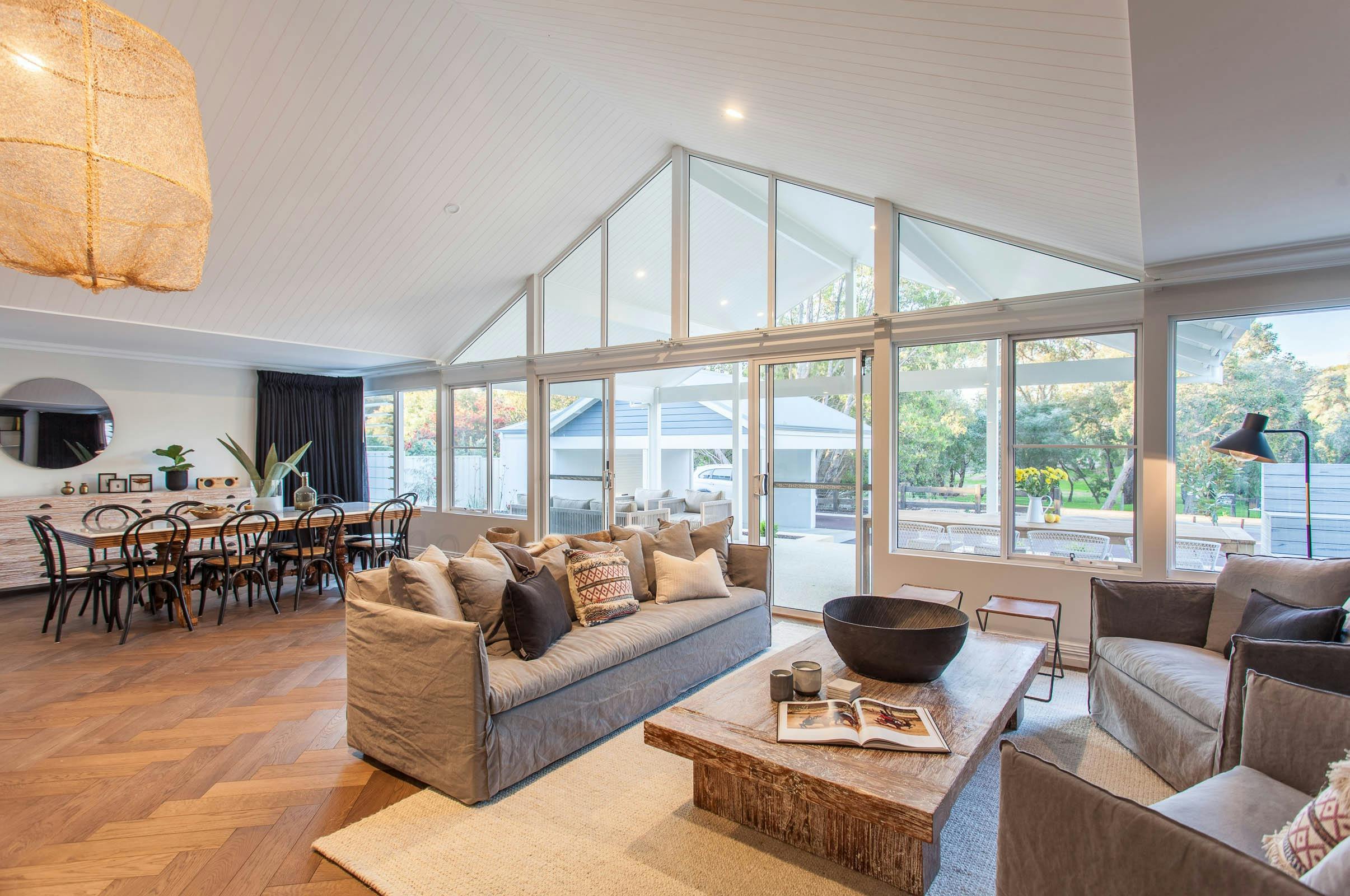 Inspirational holiday homes with beautiful architecture in jaw-dropping locations - beachfront, on acres of private land, on vineyards, in ancient forests and lively towns! Kangaroos at sunset, sweeping ocean views, walking trails, white-sandy beaches, incredible food and wine experiences and galleries are accessible from many of these homes.