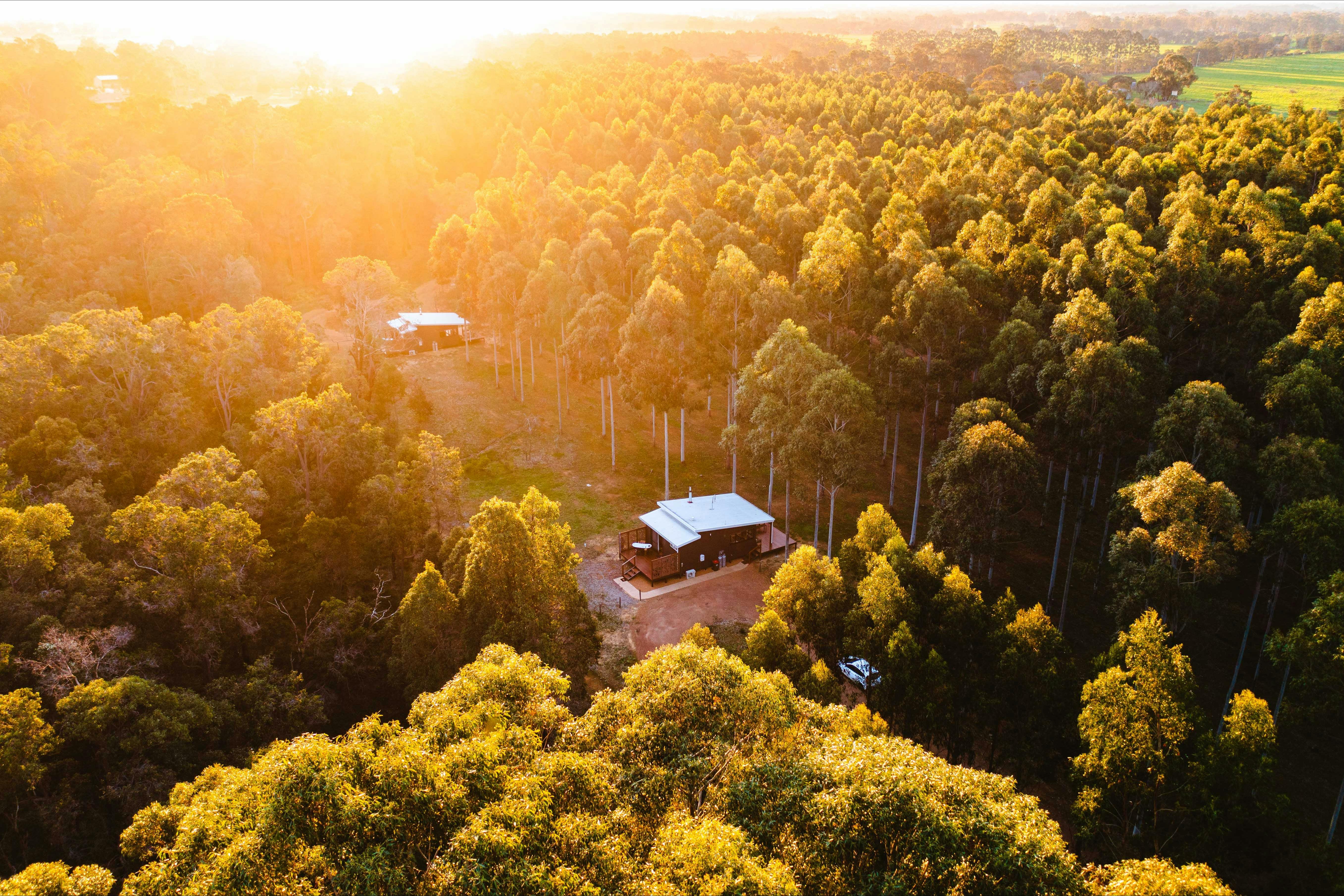 Set in Western Australia's Margaret River wine region 15 minutes from Busselton are the beautiful multi-award-winning Tree Chalets. Amid 90 acres of natural Australian bush and Rosegum plantation, there are two luxuriously appointed chalets, each accommodating two people. The chalets are off-grid and cater for adults only. Tree Chalets are eco-certified.