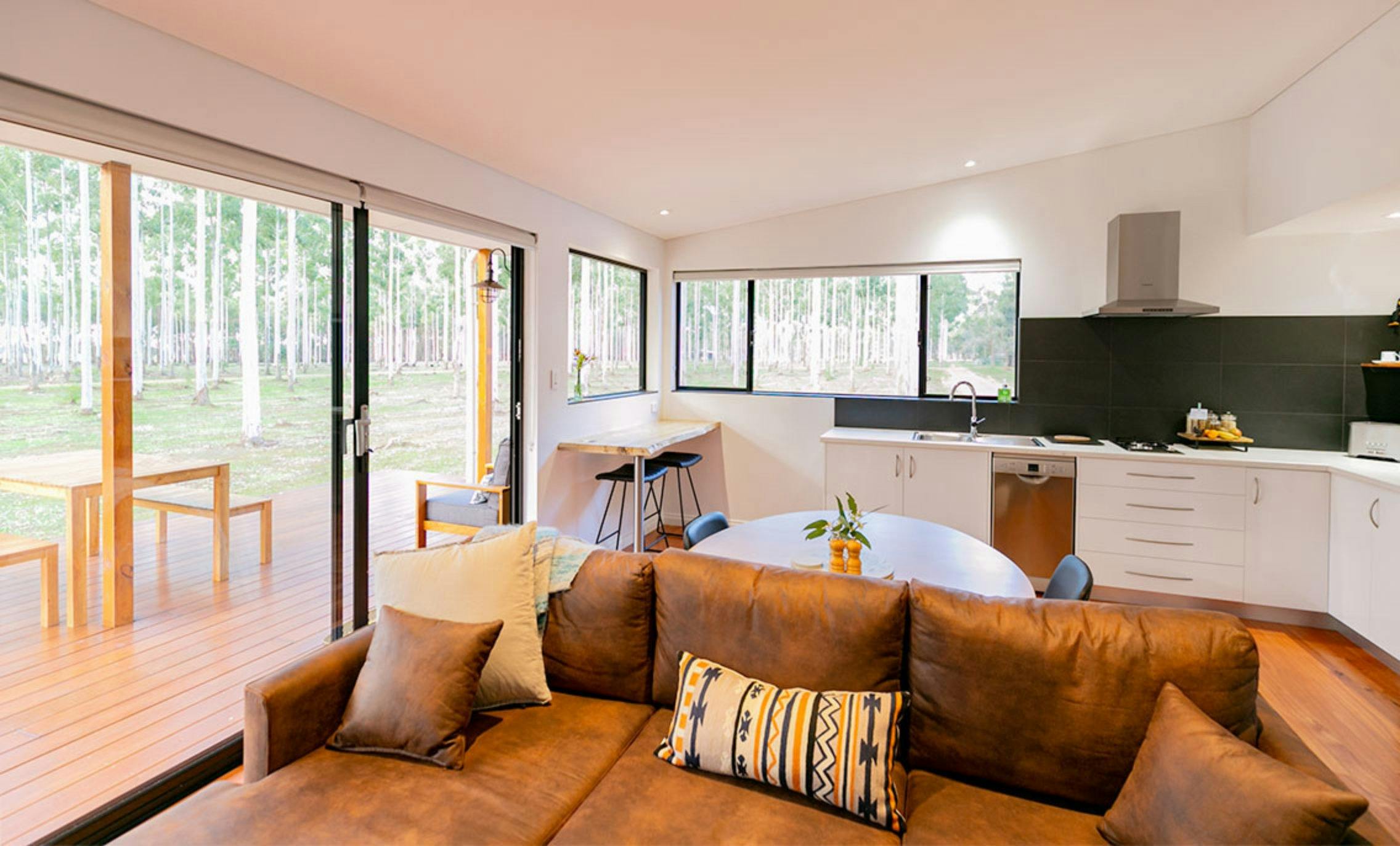 The innovative design of the chalets allows for total relaxation and immersion in nature. With over five kilometres of walk trails, couples can enjoy absolute privacy, except for an occasional visit from a kangaroo and abundant birdlife.