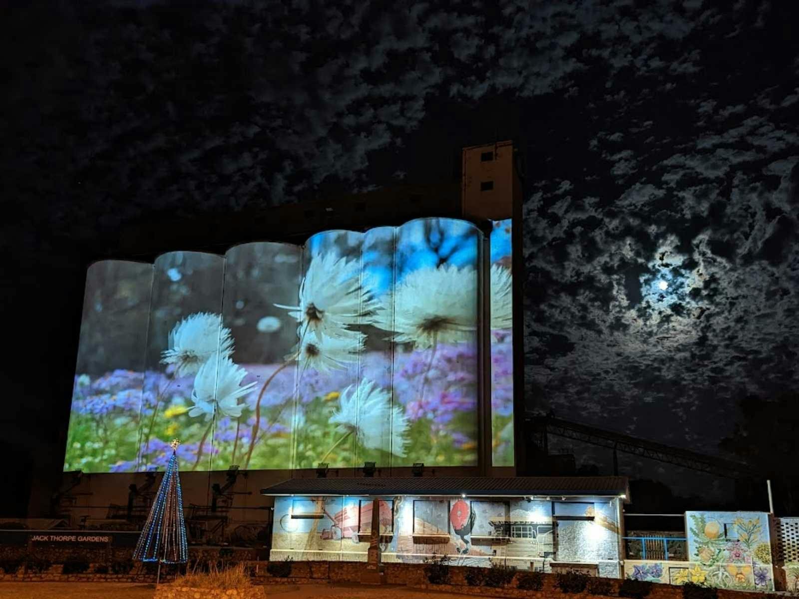 The Silos Projection Project is a new initiative by the Shire of Three Springs, using state-of-the-art projection technology to transform the 56-metre by 45-metre silos into an outdoor cinema screen.