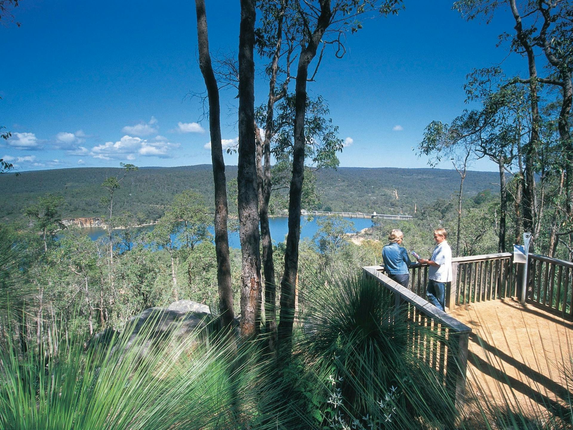 The Golden View Lookout is a small quiet picnic area located south of the Mundaring Weir, providing amazing panoramic views over Lake CY O’Connor, the Mundaring Weir and the Helena River Valley.