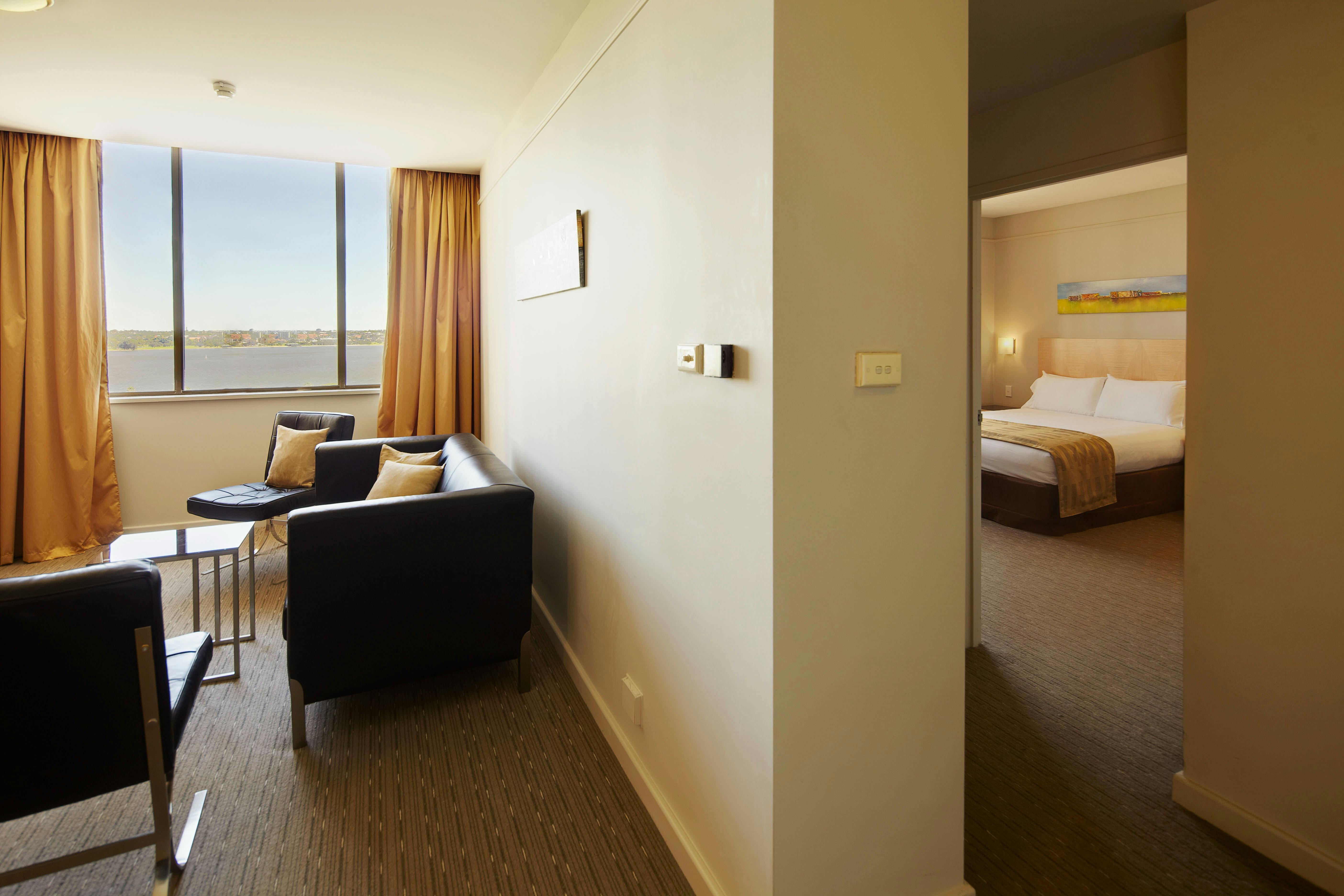 The city centre can easily be reached on foot or via a frequent free transit bus service. The Hotel is situated 1.3 kilometres from Elizabeth Quay, two kilometres from the Perth Convention and Exhibition Centre, five kilometres from the Crown Perth Casino, 11 kilometres from the Perth Domestic Airport Terminal and 18 kilometres from the Perth International Airport Terminal.