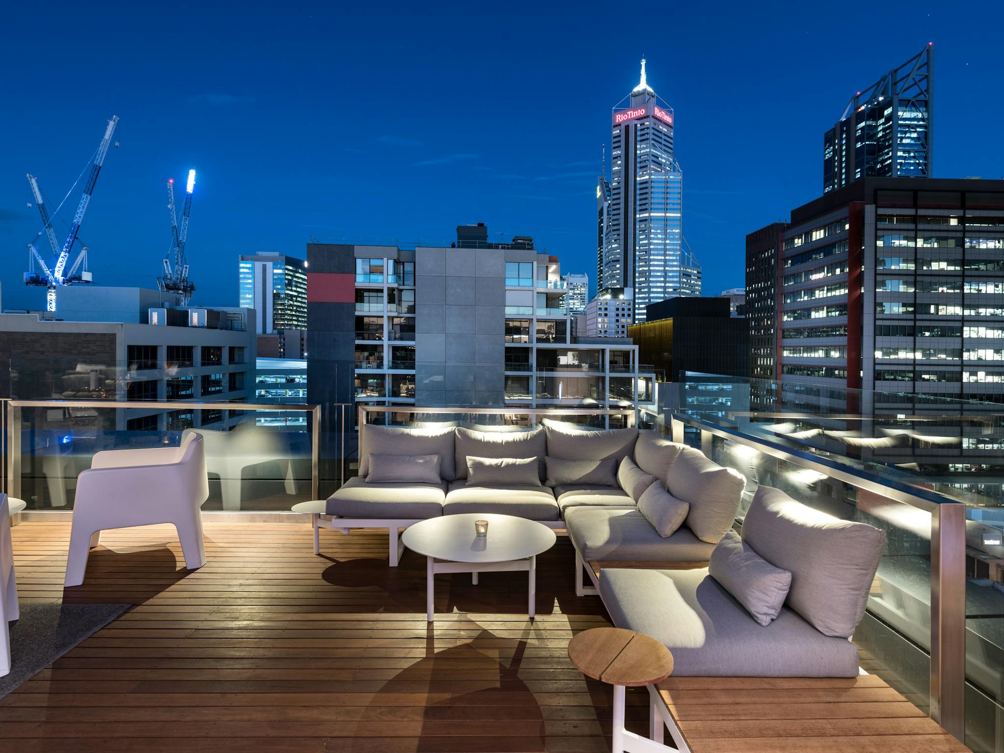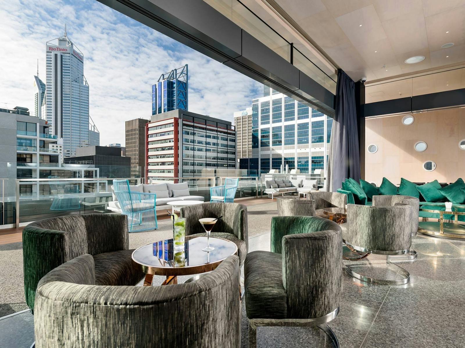 With bi-folding glass doors wrapping the indoor space and timber decking embracing the outdoor terrace, the Aurora Rooftop Bar is perfect anytime of the year.