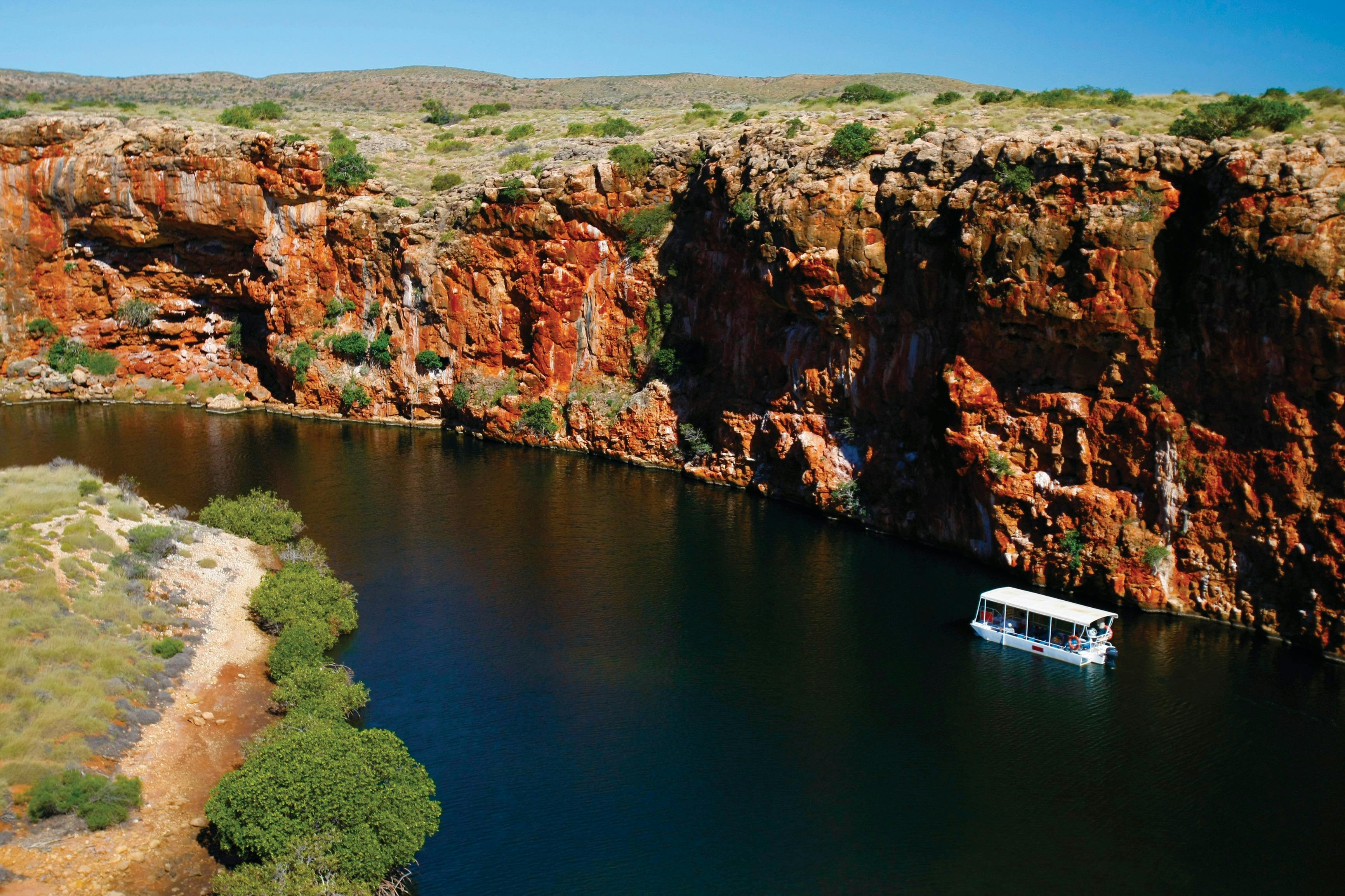 Next, head to the natural wonders of Kalbarri National Park. Traverse the Kalbarri National Park Skywalk and drink in the vast, untamed wilderness of Murchison Gorge. Go climbing or abseiling over dramatic 400 million year old rock formations, hike or kayak your way through spectacular scenery.